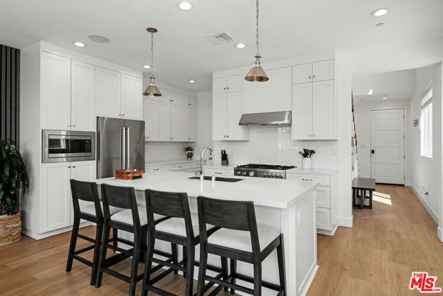 Step into this impeccably designed, newer-construction townhouse that effortlessly blends modern comforts with timeless traditional style. Offering 1,714 square feet, 3 spacious bedrooms, 2.5 baths, and a thoughtful layout, this side-by-side, townhouse-style home is a true gem. The expansive primary suite is a sanctuary of its own, complete with a luxurious walk-in closet. At the same time, a bonus area is perfect for a home office or creative space, adding flexibility to your lifestyle. The home exudes sophistication, showcasing designer finishes, high ceilings, and gorgeous flooring throughout. Every detail has been considered, from the recessed lighting to accent walls and a built-in audio system that elevates the ambiance. The open-concept main living area flows seamlessly into a chef's kitchen outfitted with high-end appliances, making it ideal for entertaining. The home has been outfitted with fully paid-for solar. Step outside to your private, fenced yard, your own little retreat for morning coffee or evening relaxation. Upstairs, you'll find the convenience of a separate laundry room, and the attached 2-car garage with direct access makes day-to-day living a breeze. Flooded with natural light, this home is as functional as it is stylish. And the location? Unbeatable. Situated just a short stroll from Sunset Junction, Los Feliz Village, and a plethora of shops, restaurants, and vibrant nightlife, you'll truly have the best of LA at your doorstep. This is more than a home, it's a lifestyle. Don't miss the opportunity to make it yours!