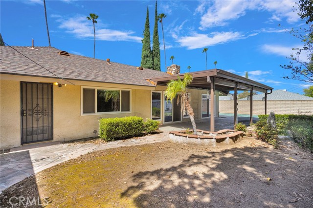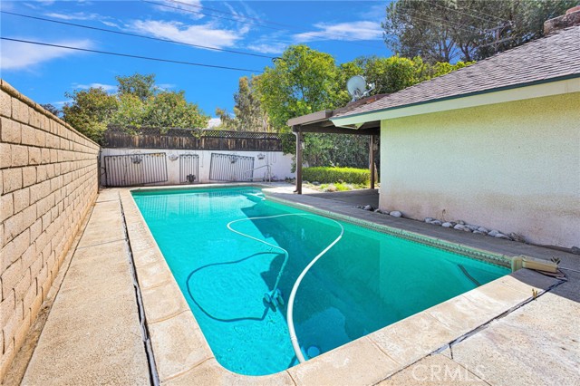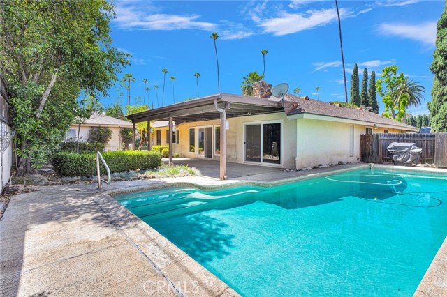 Riverside POOL Home! Spacious, well-maintained single-story home featuring a private in-ground pool and a functional floor plan. This home offers expansive living areas, including a large great room with a fireplace and sliding glass doors that provide natural light and direct access to the outdoor space. The kitchen is designed with generous counter space and stainless steel appliances. The primary suite and additional bedrooms are comfortably sized, offering flexibility for guests, a home office, or multi-use space. The primary suite has a large walk-in closet with ample space. The backyard is a central feature, highlighted by a private in-ground swimming pool and a large covered patio ideal for outdoor living and relaxation. The property includes a gated front courtyard, an expansive driveway, and mature landscaping. This home provides a comfortable, move-in ready environment where the spatial design supports a relaxed lifestyle.