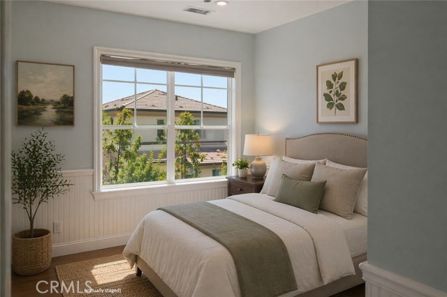 Beautifully upgraded detached home in the highly sought after Cypress Village community of Irvine, offering 1,704 square feet with 3 bedrooms, 2.5 baths, and an attached 2 car garage. Designed with a modern open concept layout, the main level features a welcoming foyer, spacious living and dining areas, a well appointed kitchen, guest powder room, and seamless access to the private rear yard and garage, creating an ideal space for everyday living and entertaining. Upstairs includes three generously sized bedrooms, two full baths, and a dedicated laundry room. The primary suite overlooks the rear yard and features a large walk in closet, dual vanities, an expansive walk in shower, and a private water closet. This turnkey home is in like new condition and showcases extensive upgrades throughout, including high grade ceramic flooring, hardwood flooring across the staircase and entire upper level, crown molding, custom baseboards, chair rail detailing, encased windows, and custom window treatments. The kitchen is equipped with granite countertops, stone backsplash, white cabinetry, and premium KitchenAid stainless steel appliances with a 5 burner cooktop with overhead range. The private rear yard is perfect for relaxing or entertaining, complete with a covered patio, mature landscaping, and an automatic irrigation system. Located in Cypress Village, residents enjoy access to scenic Jeffrey Open Space trails, resort style pools, parks, and top rated Irvine schools. Ideally situated near Irvine Spectrum, Tustin Marketplace, all major freeways, and toll roads, offering convenience to shopping, dining, and everyday amenities.