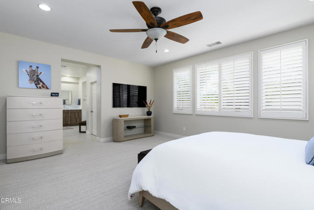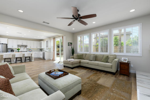 This home feels as good as it looks, thoughtfully reimagined with a refined, modern aesthetic and a comfortable, cohesive sense of ease.Natural light fills a beautifully connected main level designed for both everyday living and entertaining. The living and dining areas sit side by side, while the kitchen and family room offer a more relaxed setting just beyond. Sleek, modern finishes bring a clean, contemporary edge, continuing into the family room where the fireplace and custom media wall create a striking, seamless focal point. It's a space that invites you to settle in. A sliding glass door, added in recent years, enhances the connection to the outdoors and brings in even more light.Upstairs, the primary suite is generously sized and serves as a true retreat, anchored by a remodeled ensuite bath with designer finishes, a spacious walk-in shower, separate soaking tub, private water closet, and two walk-in closets. An additional ensuite bedroom provides comfort and privacy, while a third bedroom is served by a well-appointed hall bath. The loft offers flexible bonus space--ideal as a media room, gym, or playroom--and can be converted into a fifth bedroom if desired. Newer carpet throughout the upper level adds a fresh, move-in-ready feel.Downstairs, a fourth bedroom is ideal for guests, a home office, or multi-generational living. The adjacent powder room offers space for a future shower addition. A dedicated laundry room with additional storage and a two-car garage add to the home's everyday functionality.The backyard is designed for enjoyment, featuring a built-in BBQ, custom tile details that carry into the surrounding planters, and a manicured lawn. In the evening, the firepit and thoughtfully placed landscape lighting create a warm, inviting atmosphere.Pride of ownership is evident throughout, with thoughtful updates and careful maintenance. Village at the Park offers parks, resort-style pools, fitness centers, and a vibrant sense of community, all close to schools, shopping, and everyday conveniences.This is more than a home, it's a place to settle in, spread out, and enjoy.