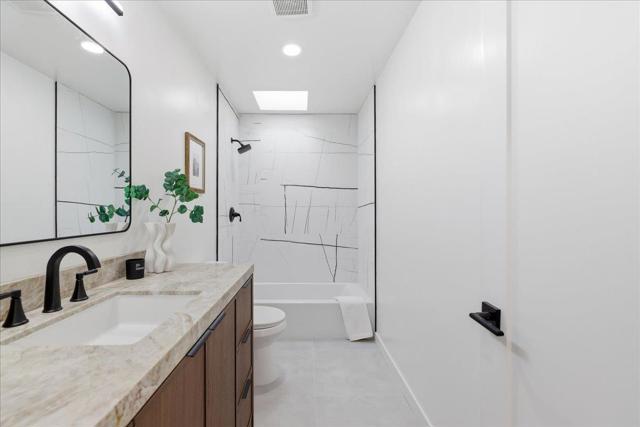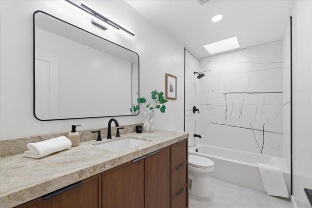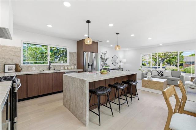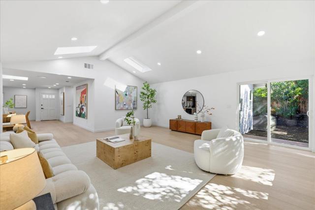 423 sq ft New family room with vaulted ceiling and whole house remodel with permit. Whole-house rewiring, Water pipes upgraded to copper, Sewer pipe upgraded to ABS. New 100 amp subpanel. Showcasing high-quality finishes throughout. Modern walnut cabinetry, Taj Mahal quartzite countertops, huge waterfall island, and engineered oak wood flooring throughout the house. Open layouts, 5 skylights with remote, lots of windows. Natural light flows into the house. East-facing Front Door. Ideally situated in a quiet, central location within the community and served by the top-rated Schools: Nelson S. Dilworth Elementary School, Joaquin Miller Middle School, and Lynbrook High School. Easy access to park, library, local restaurants, supermarket, highway, and high-tech companies.