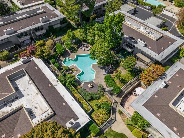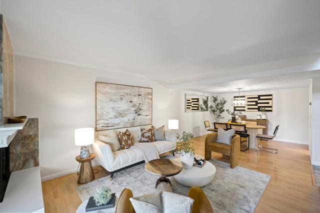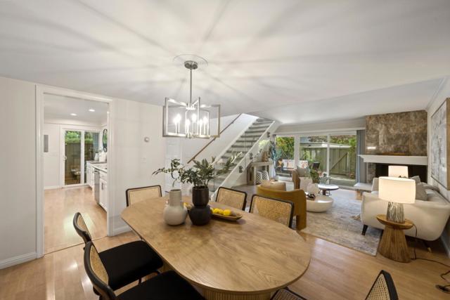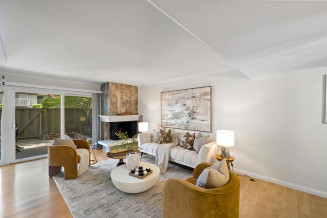 Stunning 3-bedroom end-unit townhome with a beautiful backyard patio, private balcony, and highly desirable ground-floor bedroom. Nestled in a gated community, this beautifully updated home offers comfort, style, privacy, and convenience with top Los Altos Schools. The thoughtfully designed layout includes two spacious en-suite bedrooms plus a versatile main floor third bedroom or office. Filled with natural light from large windows, sliding doors, and skylights, the home showcases beautiful flooring, floating stairs, glass railing, and a cozy fireplace. The updated kitchen features granite countertops, upgraded stainless steel appliances, and opens to both front and back patios for easy indoor-outdoor living. Both en-suite bedrooms offer mirrored closets, updated bathrooms, and efficient mini-split heating and air conditioning systems for personalized comfort. Additional highlights include a detached two-car garage, interior laundry, and access to Los Altos Squares resort-style amenities, including three pools, a sauna, clubhouse, and abundant fruit trees. Ideally located near Whole Foods, Trader Joes, The Village at San Antonio, Starbucks, Coupa Café, Caltrain, shops, restaurants, and top-rated schools including Almond, Egan, and Los Altos High (buyer to verify).