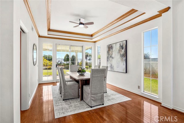 VIEW, VIEW, VIEW! Welcome to this stunning light-filled S & S executive residence showcasing gorgeous city light views and ideally situated within the prestigious East Lake Village Estates community. Just moments from the lake, this exceptional location offers a truly resort-inspired lifestyle in one of the area’s most dynamic and amenity-rich neighborhoods. Proudly offered for the first time ever, this beautifully maintained home exhibits a thoughtfully open design with expansive rooms and walls of windows. A dramatic foyer with soaring ceilings creates an unforgettable first impression and seamlessly connects the formal living and dining areas. The kitchen is designed for those that cook and entertain with huge island bar, tons of storage and countertop space, walk in pantry, eat-in breakfast nook, built in planning desk and completely open to the enormous family room with rich wood beam vaulted ceilings and a striking corner fireplace adorned with stone accents. Skylights and walls of windows flood the space with natural light, seamlessly blending indoor comfort with picturesque outdoor views. A stylish wet bar enhances the space, perfect for entertaining, while a large sliding door invites you to step outside and enjoy effortless indoor-outdoor living. The main level is completed by a large versatile bedroom, currently customized with built-in cabinetry ideal for a home office or guest retreat along with indoor laundry and garaging for 3. Upstairs, the expansive primary suite serves as a private sanctuary, featuring dual walk-in closets and a luxurious, spa-inspired bath with a jetted soaking tub, walk-in shower, and his and her dual vanities with makeup station. Two additional well-sized bedrooms and a full bath with dual vanities complete the upper level. Step outside and unwind under a full length aluminum covered patio that canvases almost the entire back of the house. Entertainment is effortless with a huge pool size grass lawn, lush landscaping, rolling hills, and twinkling city lights providing a breathtaking backdrop for relaxation or enjoyment. Residents of East Lake Village enjoy access to an unparalleled array of resort-style amenities, including sparkling pools, a scenic lake with boating and fishing, walking trails, a clubhouse, fitness center, and a vibrant calendar of year-round community events. Experience the perfect blend of luxury, comfort, and lifestyle. Welcome home to East Lake Village.