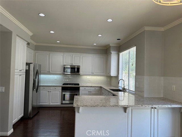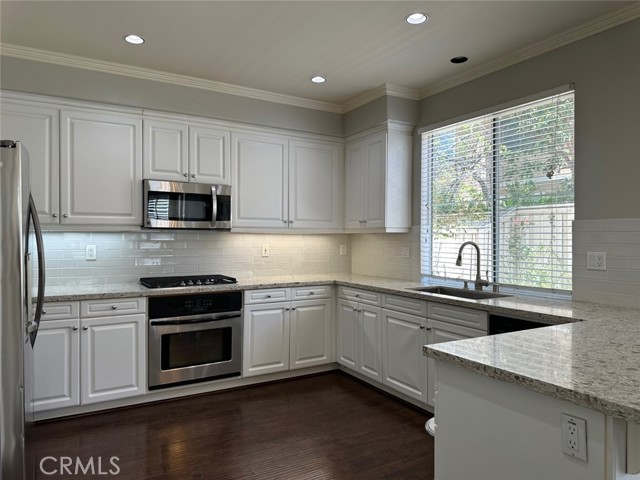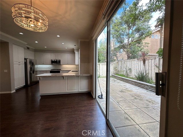 PREMIUM END UNIT HOME located in the gated community of Miramonte in Tustin Ranch! Gorgeous detached condo with a driveway, double door entrance leading to the entrance with vaulted ceiling. Open and airy floor plan with 3 bedrooms and 2.5 baths. Gourmet kitchen with Quartz countertops and elegant backsplash, continues to a spacious family room with a cozy fireplace. Step outside to a charming backyard where you can enjoy BBQ with families and friends. Beautifully upgraded wood flooring on the 1st floor and carpet on the 2nd floor. All three bedrooms are located upstairs, the master bedroom has a high ceiling offering abundant natural light with a large walk-in closet. Other two bedrooms are also spacious, bright and airy. Award-winning Tustin unified school district, walking distance to Tustin Ranch Elementary school and Tustin Sports Park. Convenient access to Market Place, shopping, restaurants and more! Washer/Dryer and Refrigerator included.
