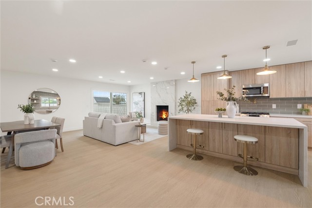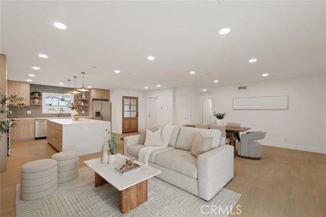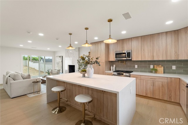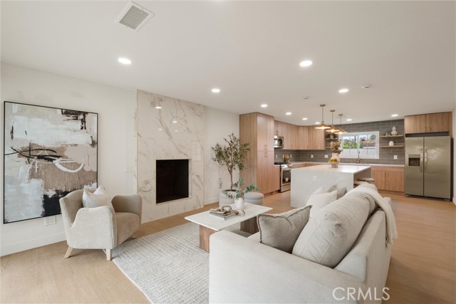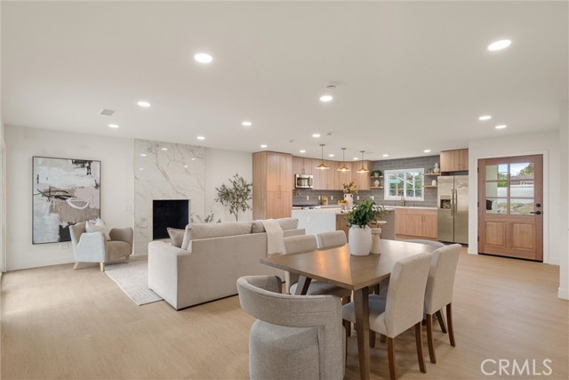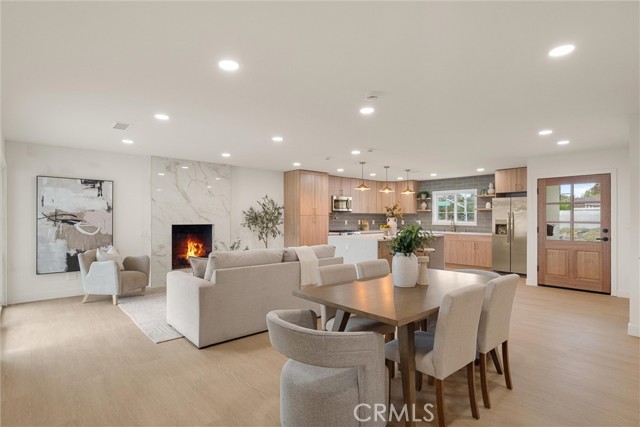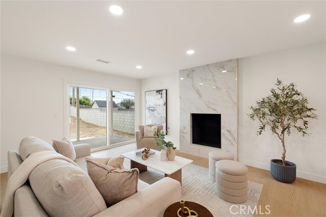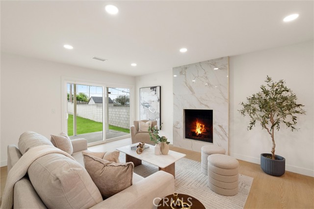 Welcome to this beautifully reimagined home in the heart of Carson, where modern design meets everyday comfort. This turnkey property features an open-concept layout with wide-plank SPC flooring, recessed lighting, and a seamless flow between the living, dining, and kitchen areas, perfect for both entertaining and daily living. The stunning chef’s kitchen is the centerpiece of the home, showcasing custom wood cabinetry, sleek quartz countertops, a large waterfall island with seating, pendant lighting, stainless steel appliances, and a stylish tile backsplash. Unwind in the inviting living room, complete with a contemporary fireplace and abundant natural light from the sliding glass doors leading to the backyard. The spa-inspired bathroom offers a freestanding soaking tub, double shower, modern fixtures, and clean, elegant finishes. Step outside to a spacious backyard filled with incredible potential. Whether you envision building an ADU, adding a pool, creating a garden retreat, or designing the ultimate outdoor entertainment space, the possibilities are truly endless. Additional upgrades include newer windows, updated electrical and plumbing fixtures, and a thoughtfully designed interior with warm, modern touches throughout. The home also features a spacious front yard, attached 2-car garage, and great curb appeal.