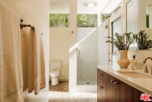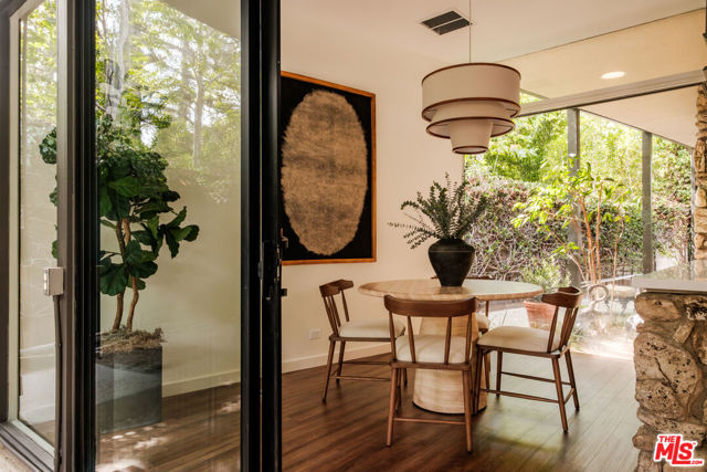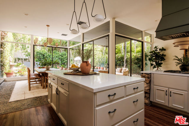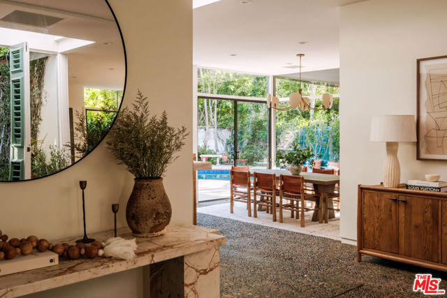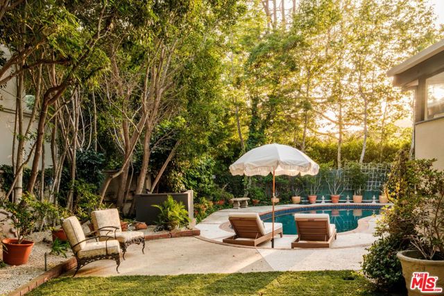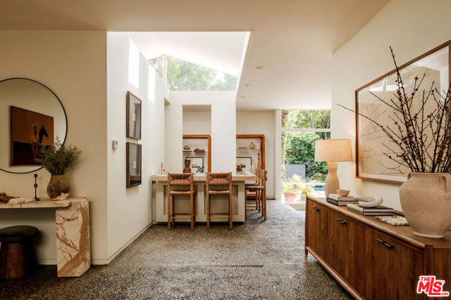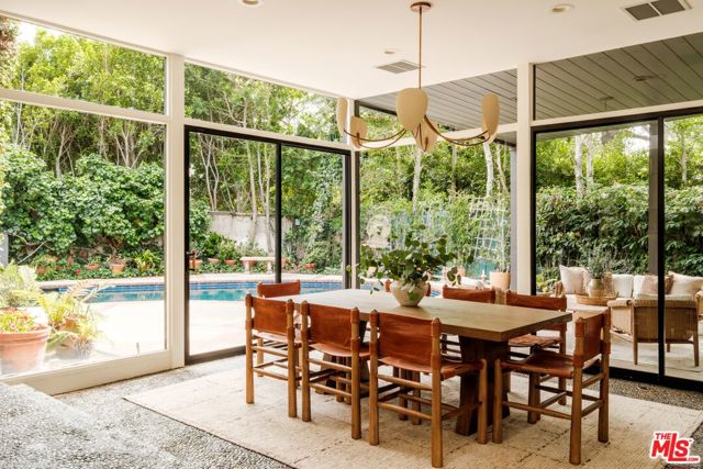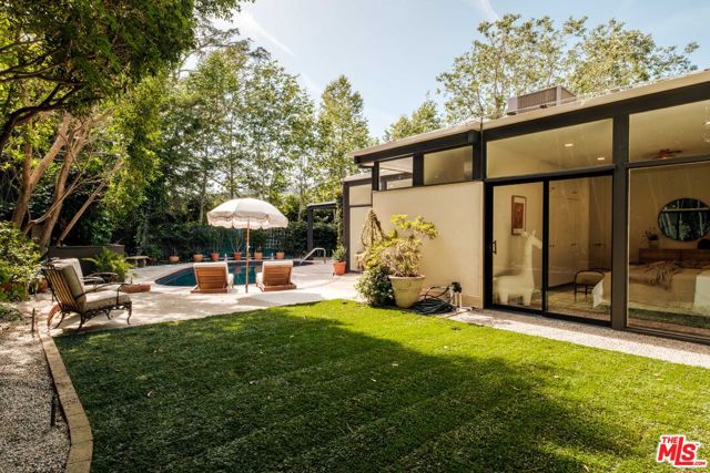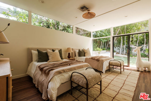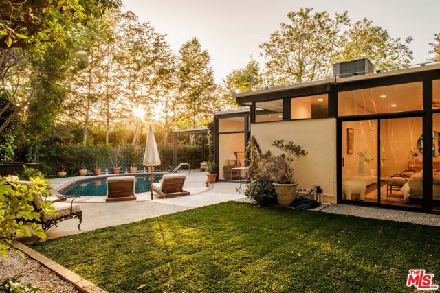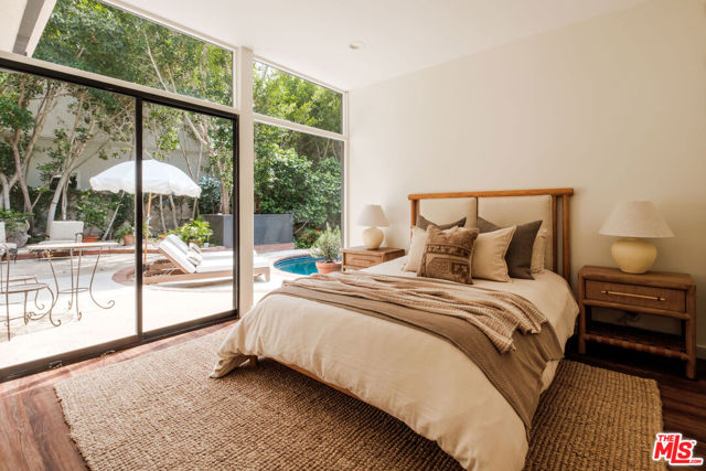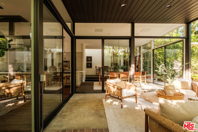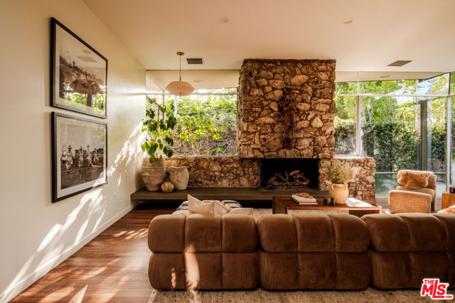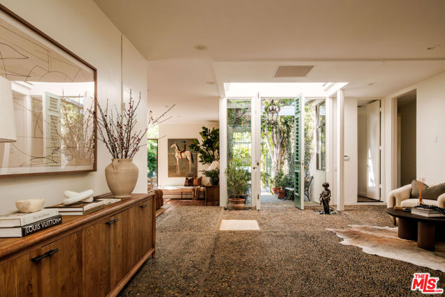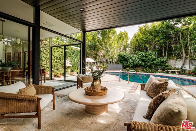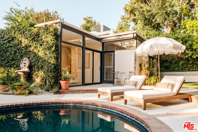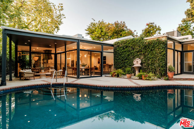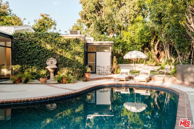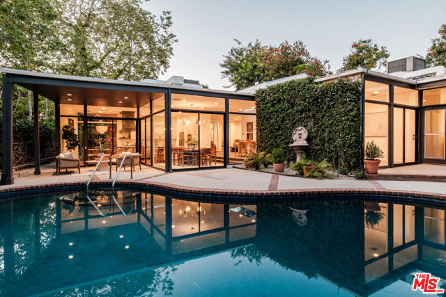 Tucked behind a lush canopy of ivy and mature greenery on prestigious Angelo Drive in Beverly Hills, this original Ray Kappe designed residence reveals itself as a secluded retreat, an enchanting secret garden hidden within the city. Offered for the first time, this is an extraordinary opportunity to acquire a truly one of a kind architectural home, where timeless mid century design meets modern day livability. Designed by pioneering architect Ray Kappe, Founder of the Southern California Institute of Architecture, the home reflects his signature philosophy of warm modernism, where post and beam construction, natural materials, and seamless indoor/outdoor flow create spaces that feel both refined and deeply livable. At 1151 Angelo Drive, walls of glass invite an abundance of natural light, illuminating a spacious open floor plan designed for both effortless living and elevated entertaining. Stone floors anchor light filled interiors, while thoughtfully composed spaces evoke a sense of calm, warmth, and sophistication. Each room opens gracefully to the outdoors, blurring the line between interior and nature. Subtle French Quarter inspired details introduce a romantic softness, adding depth and character to the home's clean architectural lines.Extensively renovated both inside and out, the residence has been thoughtfully updated to meet today's standards while preserving its architectural integrity. Recent upgrades include a new roof, a reimagined kitchen and bathrooms, updated plumbing and electrical systems, and numerous additional enhancements that ensure modern comfort without compromising design. The primary suite offers a true retreat, complete with a spa like bath featuring a luxurious wet room and a sculptural pedestal tub, an environment designed for relaxation and renewal. The stunning living room is centered by an impressive stone fireplace, with expansive walls of glass that frame serene views of the private patios beyond. Beyond the interiors, the property unfolds into a magical, ultra private backyard designed for both tranquility and entertaining. A newly built covered outdoor living room overlooks lush, mature landscaping and a sparkling pool, creating a resort like setting that feels worlds away from the city. A place where modernist design and everyday comfort exist in perfect harmony. Thoughtfully restored, move in ready, and impossible to replicate, it stands not only as a residence, but as a meaningful piece of architectural history. Just moments from the heart of Beverly Hills, Sunset Boulevard, and the Westside, the location offers unmatched convenience while maintaining a rare sense of quiet privacy.