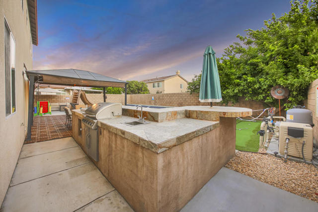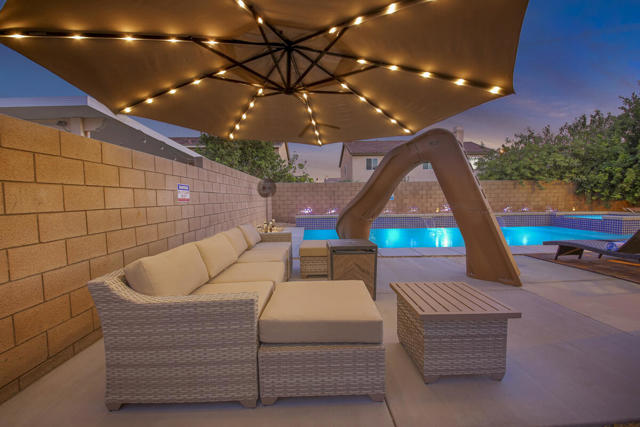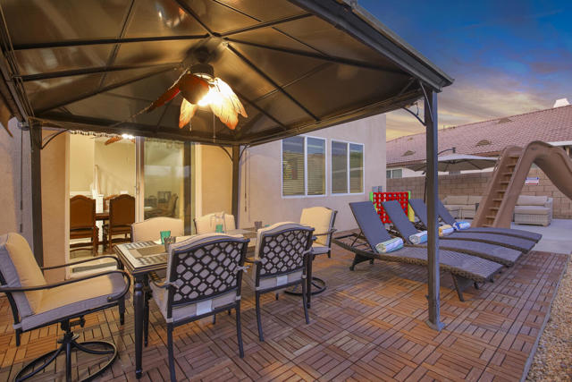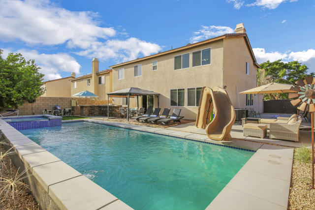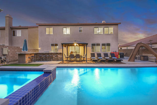**Welcome to La Morada** Discover this no HOA community in Coachella, highly sought after for the Coachella and Stagecoach music festivals, along with numerous golf, tennis, sports, and art events!This spacious property offers 2,976 square feet and features six bedrooms and three full bathrooms. Enjoy two living areas: a family room and a billiard room. The kitchen boasts granite countertops and an ample dining area, along with a separate formal dining room. The sixth bedroom is conveniently located on the first floor with a full bath.Step outside to a stunning backyard featuring a brand new $80,000 swimming pool and spa with a slide, fully landscaped for your enjoyment, alongside a custom built-in BBQ island. Additional highlights include a three-car tandem garage with an epoxy floor finish, custom storage, and a converted game room stocked with the latest and retro games, as well as gym equipment. The property also provides impressive wide double-gate RV access and extra parking.Short-term rentals are permitted, and it's located within the Lower IID utility district. Make this your ideal vacation rental today!