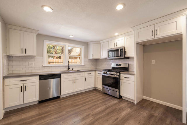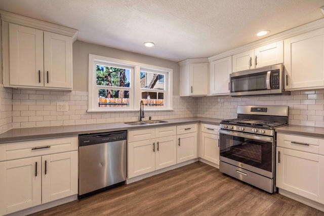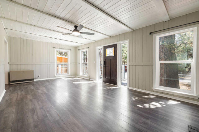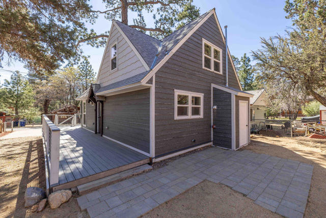 Well-maintained mountain getaway offering comfort, updates, and low-maintenance living. This charming 2-bedroom, 1-bath home sits on a level 4,750 sq ft lot and has seen numerous recent improvements throughout. Enjoy easy access with level parking for 2-3 vehicles and a fully fenced yard--perfect for pets and outdoor enjoyment. The exterior features durable concrete siding and Trex decking, while the backyard is set up for relaxation and entertaining with a paver patio and horseshoe pit. Inside, the inviting living room is anchored by a cozy wood-burning fireplace. The kitchen has been upgraded with quartz countertops and includes a microwave, stove, and dishwasher. Additional upgrades include dual-pane windows throughout, a newer Rinnai natural gas heater, and a newer front-loading Maytag washer and dryer. The updated bathroom features a tile shower, and new carpet upstairs adds a fresh touch. A large storage attic provides extra space for all your mountain gear. A great opportunity for a full-time residence, vacation home, or investment property.