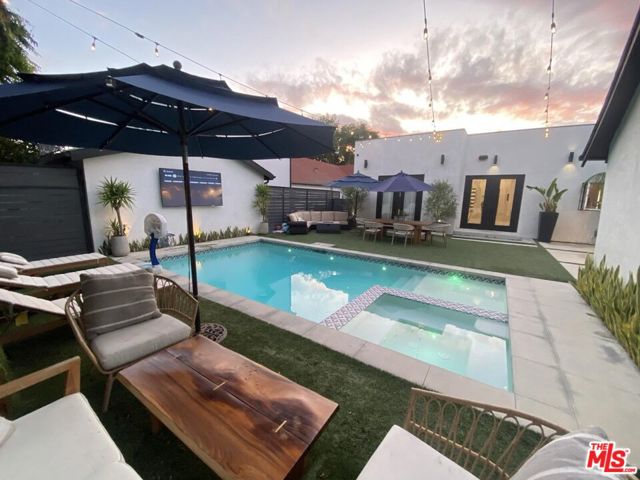 Fully Remodeled 4BR + Guesthouse Pool Home. Prime West LA Stunning, light-filled home offering 4 bedrooms and 3 bathrooms, plus a detached 1 bed / 1 bath guesthouse, perfect for a home office, gym, or private guest suite. Designed for modern living, the home features soaring 12-foot ceilings in the main living areas and primary suite, a high-end chef's kitchen, spacious closets, and a dedicated laundry room. Fully remodeled in 2018 with clean, contemporary finishes throughout. Step outside to a private backyard oasis with a sparkling pool and lush landscaping ideal for entertaining or relaxing in total privacy. Located on a quiet residential street in a prime West Los Angeles neighborhood, just minutes from top dining, shopping, and entertainment.