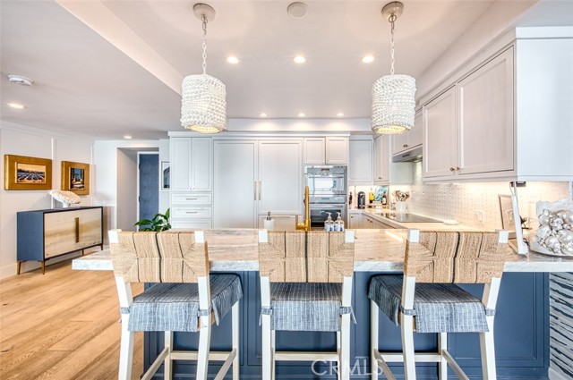 Enjoy endless views of the Newport Harbor, Ocean, Palos Verdes to Emerald Bay and Catalina Island all from your double balconies and interior views from the 7th floor at Newport Towers. This property was completely gutted in 2019 and designed for gracious living with every amenity you would expect. Gourmet kitchen with top of the line appliances from Thermador. The spacious ocean blue peninsula can seat your guests while enjoying the views and the surrounding beauty. The custom walk behind bar is always a huge draw for friends and neighbors to converse and enjoy beverages from the Wine Tower and undercounter beverage refrigerator and ice maker, outdoor Summerset Barbeque. The large living room is quite spacious with views of the bay and ocean. The large dining room seats 8 comfortably and there is deck seating for up to 8 as well with ceiling heaters for cooler nights. Enjoy the fire pit while you watch the yachts go by and the stars twinkling! The primary bedroom was enlarged offering king bed size and boasts a sitting area with panoramic views or enjoy conversation with those on the deck. The sliders part to include the outside space! The primary bathroom is marble with a walk-in shower, 9 drawer vanity with Keuco Royal lighted medicine cabinets and more. The guest room side of the property fits a queen bed with panoramic views of the whole coastline, a closet and guest bath with walk-in stone shower, vanity and storage cabinet. On the Primary side there is another bedroom currently an office. Walk to Lido Marina Village and 5 exceptional restaurants. This one of a kind residence with views from all rooms will rent quickly for the finest summer months through September.