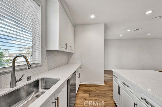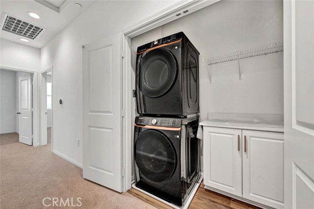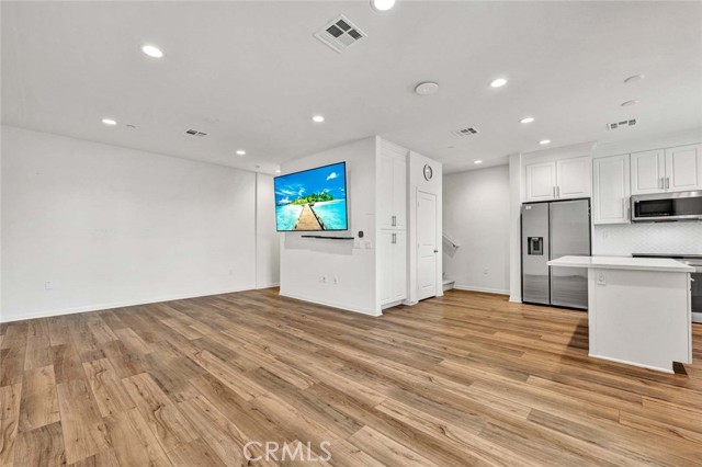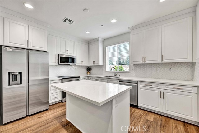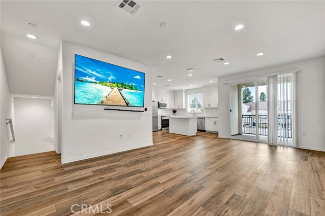 Welcome to this brand-new smart home in the Sunflower Community of Anaheim, offering a clean, modern design and an open, light-filled layout. This 2-bedroom, 2.5-bath residence is thoughtfully upgraded throughout and ready for immediate move-in. The main living space features a spacious open-concept design with high ceilings, recessed lighting, and wide-plank flooring that flows seamlessly from the living area into the kitchen. Large sliding doors open to a private covered balcony, creating an easy indoor-outdoor connection and a comfortable place to unwind. The kitchen is both functional and stylish, complete with a large center island, quartz countertops, designer backsplash, stainless steel appliances, and abundant cabinetry. The layout is ideal for everyday living while still offering a clean, modern aesthetic. Upstairs, both bedrooms are generously sized and each features its own private en-suite bathroom, offering ideal comfort and privacy. The primary suite includes dual vanities, a walk-in closet, and a well-appointed bath, while a dedicated laundry area with built-in cabinetry adds everyday convenience. Additional features include an attached two-car garage with overhead storage and electric vehicle charging capability. The home is equipped with solar panels to help reduce electricity costs, along with integrated smart home features for added efficiency and ease. Located within walking distance to Pioneer Park and just minutes from the 5, 57, and 91 freeways, this home offers both convenience and comfort in one of Anaheim’s newer communities.