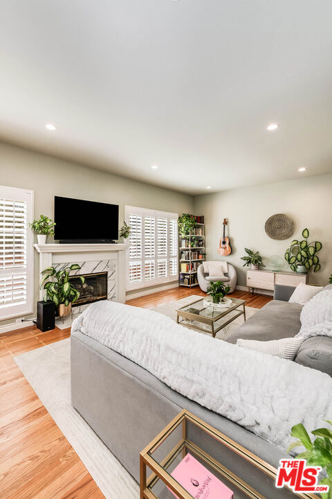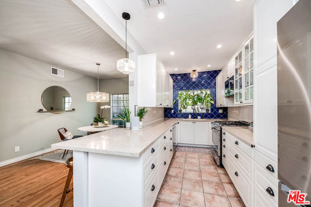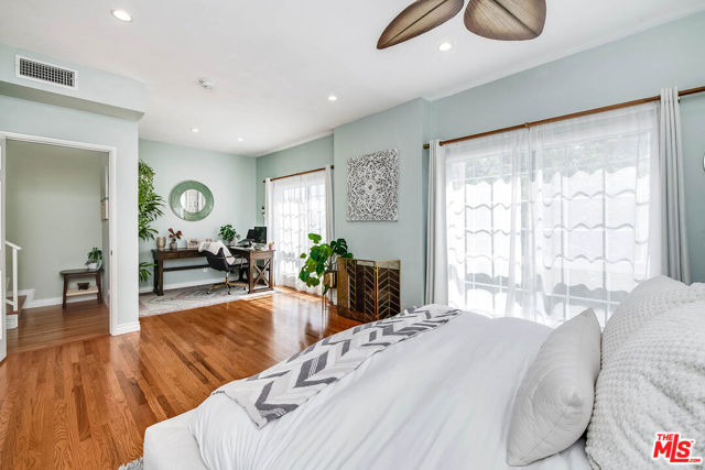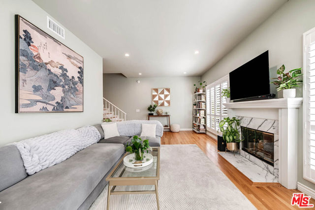 Exquisitely updated 2-bedroom, 2.5-bath townhouse in prime Toluca Lake offering over 1,850 sq ft of light-filled living space. This multi-level home features an expansive living room with fireplace, soaring ceilings, oak floors, updated Wet-Bar, and plantation shutters, flowing into a formal dining area and a beautifully remodeled kitchen with quartz countertops, custom cabinetry, stainless steel appliances, and breakfast bar. Upstairs, two spacious en-suite bedrooms include a stunning primary retreat with fireplace, dual walk-in closets, and a spa-inspired bath with soaking tub and separate shower. The highlight is a private rooftop terraceperfect for entertaining, relaxing, and watching sunsets, with treetop, mountain, and Universal Studios views. Additional amenities include a powder room, in-unit laundry, ample storage, and direct access to a semi-private garage. Ideally located moments from Toluca Lake Village, shops, dining, studios, and major freeways.
