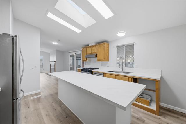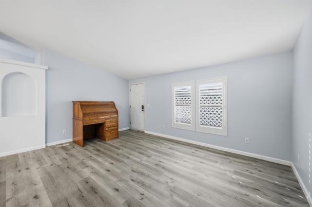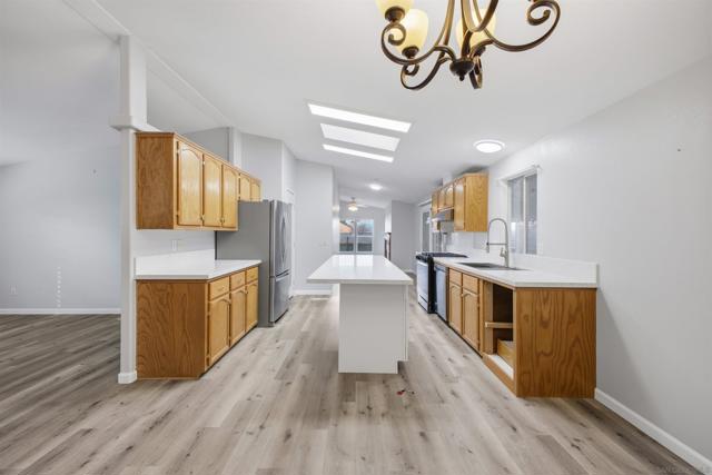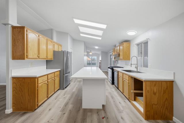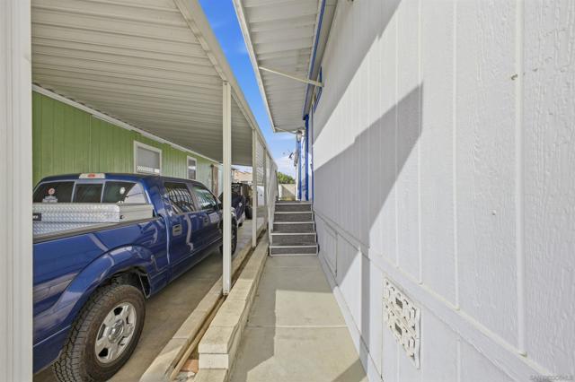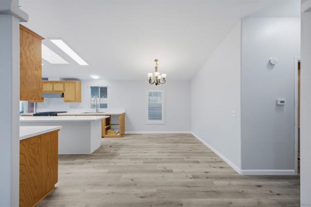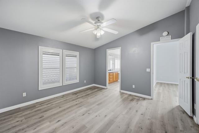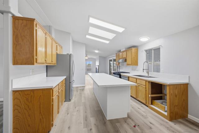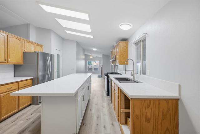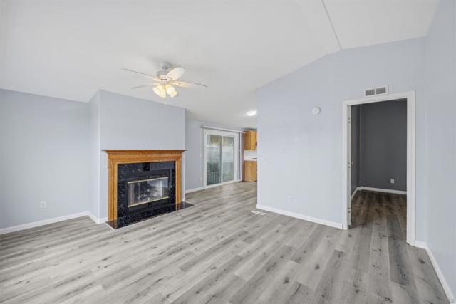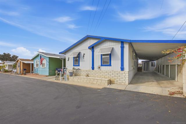 SOLAR SYSTEM. Welcome to a rare private corner unit tucked away at the far end of the community.one of the most desirable locations for added privacy and ample parking. This beautifully maintained and remodeled home offers a premium blend of comfort, functionality, and thoughtful design. As you enter, you’re welcomed by an open and inviting layout featuring the living room, dining area, and a fully upgraded kitchen. New flooring flows seamlessly throughout the home, while the remodeled kitchen showcases generous cabinetry, modern appliances, and a spacious island, perfect for meal prep, entertaining, or gathering with guests. Two well-appointed bedrooms are located on the left wing of the home with convenient access to a full bathroom, creating an ideal separation of space. Toward the right, a second living area with a cozy fireplace offers a flexible bonus space for relaxing or hosting. This area connects directly to the expansive primary bedroom, complete with a private en-suite bathroom featuring a soaking tub for added comfort. High vaulted ceilings enhance the open, airy feel throughout the home. Additional highlights include a private pantry, a dedicated laundry room, and a solar lease at approximately $170 per month that provides energy for the entire property. Situated within the desirable Rancho Mesa gated 55+ community, this charming 3-bedroom, 2-bath manufactured home offers a peaceful lifestyle with well-maintained surroundings. PARK RENT IS $1,750 and covers all utilities except gas & electric.