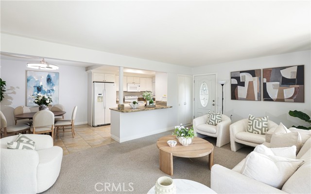 Professional photos coming soon — additional photos will be updated shortly. Welcome to "Casa Linda" — one of the most sought-after models in Laguna Woods Village. Ground-floor living means you can pull up curbside and walk directly to your front door — no stairs, no elevator, just easy, everyday convenience. Prefer to drive right up? You can also park directly in front of your unit for the ultimate in ground-level accessibility. This 2-bedroom, 1¾-bath co-op offers approximately 1,040 sq ft of single-level living. The open floor plan connects an updated kitchen — featuring granite countertops, newer cooktop, microwave, refrigerator, sink, and fixtures — to a sun-filled living and dining area with direct access to a private patio. Step outside to enjoy the Southern California sunshine, tend your garden, or fire up the BBQ. Updated window and slider coverings and brand-new modern ceiling fan lights give every room a clean, contemporary feel. Both bedrooms are spacious with easy access to their own dedicated bathrooms and ample closet space. Washer and dryer included. Your dedicated carport includes built-in storage and a conveniently located EV charging outlet — guaranteed charging for your car or golf cart, day or night. Near Gates 5 and 6 and Clubhouses 1, 2, and 4 — and just minutes from Laguna Beach, the Great Park, Irvine Spectrum, top medical centers, shopping, and major freeways. Laguna Woods Village offers an unmatched resort lifestyle: 7 clubhouses, 5 pools, 4 spas, 2 golf courses, driving range, tennis, pickleball, bocce ball, fitness center, ballroom, hiking and walking trails, RV parking, workshops, and over 250 clubs and activities. Turnkey, move-in ready — Casa Linda delivers the Laguna Woods lifestyle without compromise.