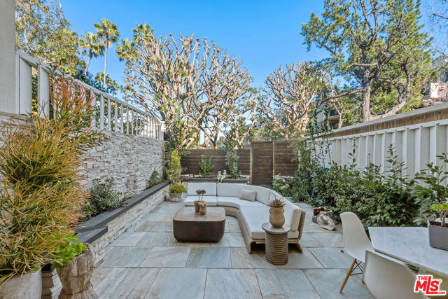 Step into this exquisite decorator done townhouse where luxurious design meets serene Zen inspired living. Thoughtfully curated with earthy finishes and sophisticated details throughout, this exceptional home offers an open floorplan that effortlessly blends indoor and outdoor living. A dramatic wall of bifold doors opens to the expansive private patio creating a seamless flow from the interior to a stunning outdoor retreat finished with natural stone and surrounded by mature landscaping. The result is a tranquil resort-like setting perfect for entertaining, relaxing, or everyday living. Every space has been intentionally designed with warmth and elegance. Rich textures, organic tones, and curated moments give the home a refined yet welcoming feel. Tucked beneath the stairs, a charming nook with daybed and custom built-ins offers a one-of-a-kind space for lounging or quiet reflection. There is a fabulous chef's kitchen with top of the line appliances and guest bathroom on the main level. Upstairs are two large ensuite bedrooms with built out closets, bathrooms with intricate tilework and elevated design, in unit washer dryer and plenty of storage. Located between the park and Barrington Court shops, this oasis sits in the middle of 4 landscaped acres with two pools, a private dog park and ample guest parking.