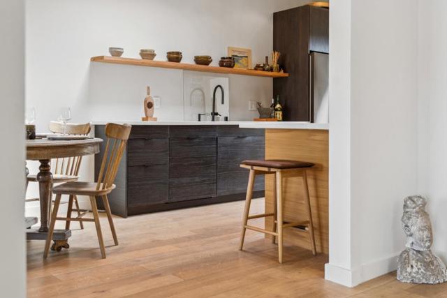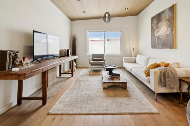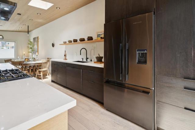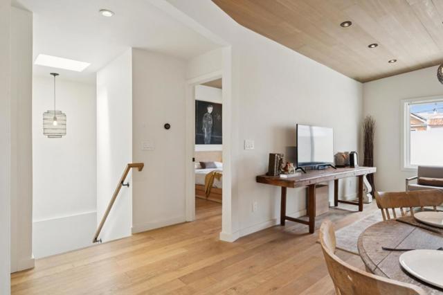 Featured in Dwell Magazine, this completely remodeled 4BD/2BA residence centers on thoughtful details and a minimal, contemporary aesthetic. The upper level features a 3BD/1BA layout defined by dramatic high-pitched wood ceilings and skylights flooding the open kitchen and living spaces with natural light. High-design finishes showcase curated tiles from Ann Sacks, Waterworks, and Heath Ceramics, including a spa-inspired bathroom. The lower level offers an open 1BD configuration and a separate entrance. This flexible footprint provides high ceilings and prime potential for guests, a home office, or strategic rental income. A direct-access door steps immediately into a private, Bali-inspired contemporary yarda lush, tropical sanctuary. Located in San Francisco's sunnier Bayview with unrivaled connectivity. Blocks from T-Third Street light rail for a 25-minute Downtown commute; immediate 101/280 access for Silicon Valley transit. Close to Potrero Hill and Dogpatch amenities, dining, and cafes. Enjoy Bayview's sunnier weather and strong upside potential in a rapidly growing neighborhood.