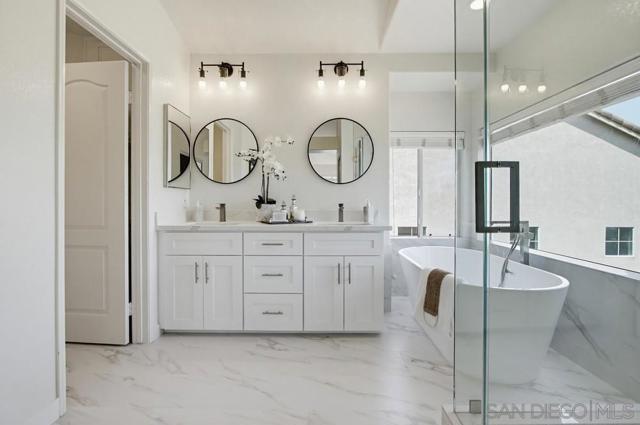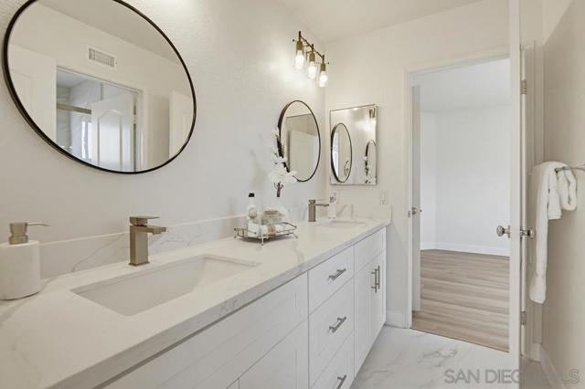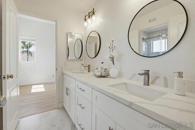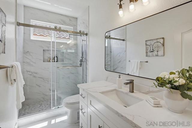 View, view, view! Do not miss out this beautifully remodeled 4 BR 3 Bathroom cul-de-sac view house in one of Mira Mesa’s most desirable neighborhoods. Step inside to discover a light-filled open floor plan enhanced by stylish brand new luxury vinyl flooring. New cabinets and quartz counter tops in Kitchen. Upgraded bathrooms with new shower, new floor and new vanities. One bedroom with full bathroom at entry level provide more flexibility and convenience. 2nd floor has master suite with stunning canyon view from both bedroom and bathroom. Two other bedrooms sharing a Jack-and-Jill bathroom. Huge backyard with breathtaking canyon views—ideal for outdoor dining, entertaining, or simply enjoying San Diego’s year-round sunshine in a peaceful setting. Attached three car garage. Quite neighborhood and very convenient location. Near shopping, restaurants, Sorrento Valley, beaches, UCSD and easy access to freeway 5, 805 and 15.
