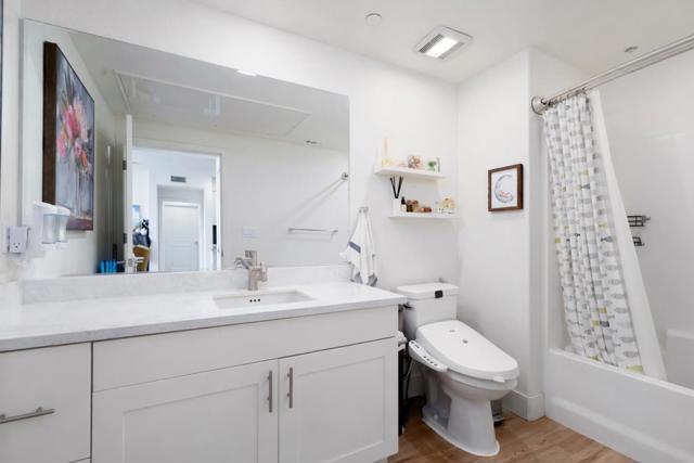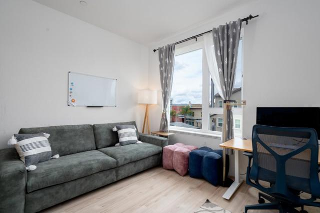Welcome to 5951 Sunstone Dr #312 in the desirable Avenue One community. Built in 2019, this ~1,306 sq ft condo offers single-level living with elevator access. The open-concept floor plan features 2 primary suites plus a versatile den, ideal for an office or guest space. The kitchen includes white cabinetry with soft-close features, quartz countertops, a large island with breakfast bar, and stainless steel appliances with gas range. The primary suite offers a walk-in closet and dual-sink vanity with walk-in shower. Additional highlights include a private balcony and a rare, secure gated garage with 2 assigned side-by-side parking spaces. Community amenities include a clubhouse, pool, spa, fitness center, yoga room, BBQ areas, and community gardens. Conveniently located near Costco, dining, Hwy 85 & 101, and VTA Light Rail.