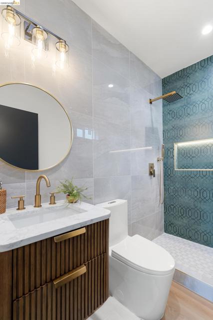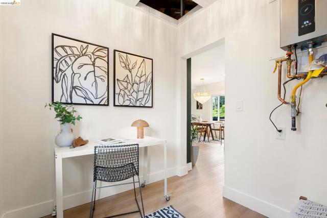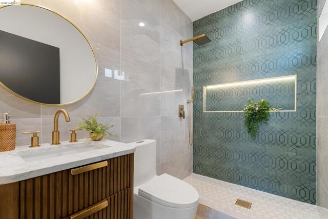 Welcome to 5521 Fremont St, a beautifully reimagined Modern Craftsman residence where timeless architecture meets refined contemporary design. Fully Permitted | 36” Gas Range | Solar Owned | Office + Bonus Space | ADU Potential From the moment you arrive, the home captivates with its elevated curb appeal, featuring a rich designer color palette, custom brick detailing, and a welcoming front entry that sets the tone for the quality found throughout. Inside, you’ll discover a light-filled, thoughtfully designed interior with an effortless flow between living spaces—perfectly balancing comfort and sophistication. The open-concept layout creates an inviting atmosphere ideal for both everyday living and upscale entertaining. At the heart of the home, the chef-inspired kitchen is equipped with brand-new stainless steel appliances, including a 36” gas range, sleek cabinetry, and elegant countertops—designed for both functionality and style. The home features a dedicated office space, ideal for remote work or a quiet study, along with well-sized bedrooms that offer comfort and flexibility. The spa-inspired bathrooms showcase curated finishes that elevate the overall living experience. Bonus Space: A finished basement provides additional versatile space, perfect for a studio, home gym, media room, or creative workspace (not included in the legal square footage)—adding valuable flexibility. This property has been fully remodeled with permits, offering peace of mind with new plumbing and updated electrical systems. Additional upgrades include a tankless water heater for energy efficiency and convenience, along with an owned solar system to help reduce utility costs and increase long-term value. Step outside to a private outdoor setting with a long driveway, providing ample parking and convenience. The generous lot also offers ADU or expansion potential (buyer to verify), creating opportunities for additional income or multi-generational living. Prime location—just minutes from restaurants, shopping centers, local stores, and major freeways, offering easy access throughout Oakland and the greater Bay Area. A rare opportunity to own a turn-key, fully permitted home with high-end upgrades, energy efficiency, and exceptional future potential.