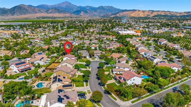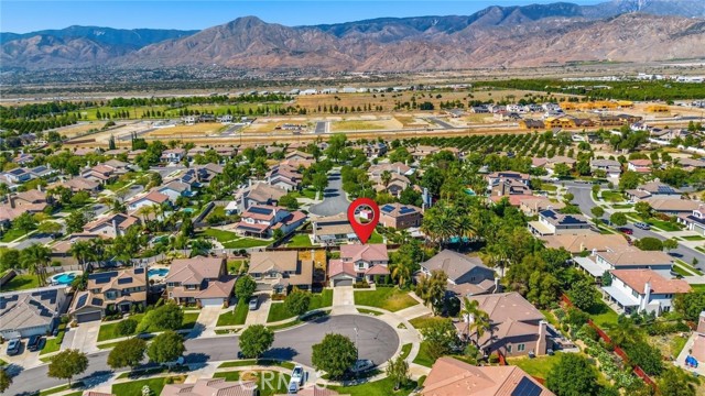 Welcome to this beautifully designed two-story home in the highly sought-after University Grove community of North Redlands. Situated on a large flat cul-de-sac lot, this residence offers the perfect blend of comfort, space, and functionality. Inside you will find a separate formal living and dining rooms, ideal for entertaining. The spacious island kitchen opens seamlessly to the family room and cozy breakfast nook, and features a convenient butler's pantry for added storage and prep space. The flexibel floor plan includes one bedroom and a full bathroom on the main level-perfect for guests or multigenerational living. Upstairs, you'll find three additional bedrooms and dual walk-in closets. Additional highlights include a separate laundry room and three-car tandem garage with ample storage space. The backyard is a standout feature, offering a large grassy area and mature fruit trees ideal for relaxing or entertaining. Located near top-rated schools, shopping, and everyday conveniences, this move in ready home offers and exceptional lifestyle in one of Redlands most desirable neighborhoods.