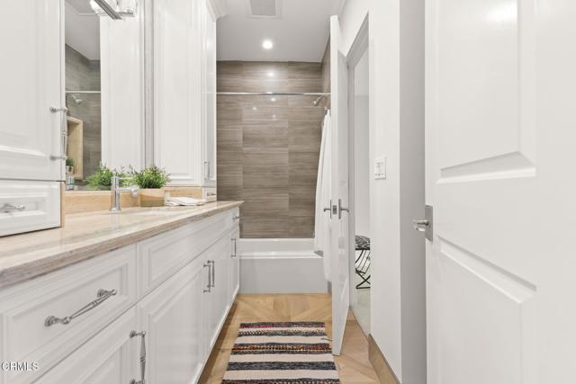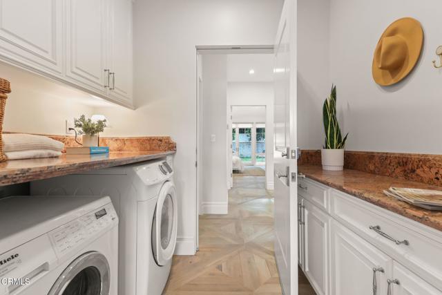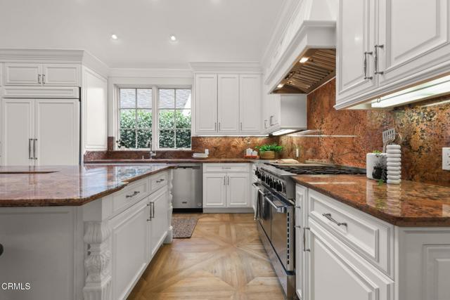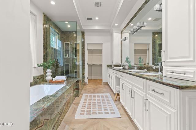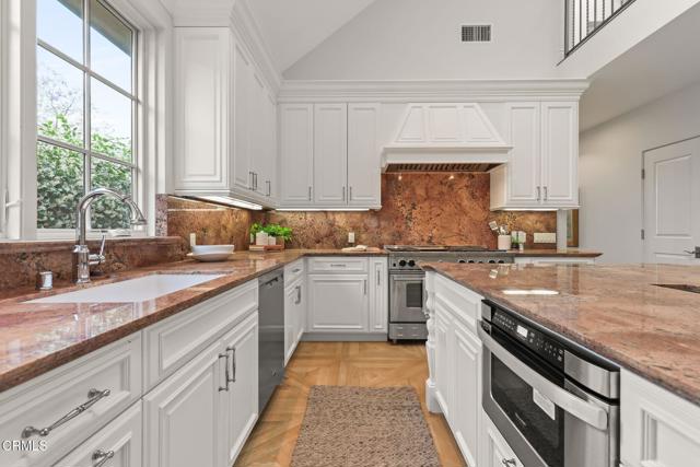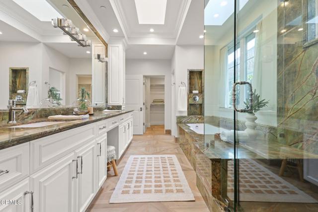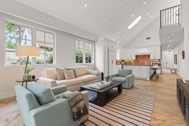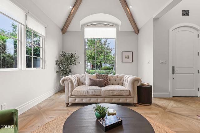 Custom built in 2014 and situated in one of the most sought-after communities in Burbank, this stunning upscale designer home blends modern luxury with thoughtful functionality. Designed with open space, vaulted ceilings, and an abundance of natural light, this home offers a comfortable and elegant floor plan ideal for today's lifestyle.Upon entry, you're welcomed by dramatic vaulted, beamed ceilings that lead into a formal living room featuring a striking double-sided onyx stone fireplace, expansive windows with custom blinds, and beautiful porcelain tile flooring. The spacious vaulted dining area flows seamlessly into a chef's kitchen, complete with a massive center island, high-end appliances including a 6-burner stove, and custom cabinetry--all opening to a bright family room. French doors provide easy access to a private backyard, perfect for indoor-outdoor living.The lower level features a luxurious primary suite with onyx stone dual vanities, 2 separate his-and-her walk-in closets, a soaking tub, and a standalone shower. Also on the main level is a versatile bonus room that can serve as a 5th bedroom or home office, a full secondary bathroom, and a convenient laundry room.Upstairs, you'll find three additional bedrooms, including a second primary suite with high ceilings, an en-suite bathroom featuring a dual vanity, and generous closet space. The remaining two bedrooms are connected by a Jack-and-Jill bathroom, offering both comfort and practicality.The private backyard is complemented by beautifully landscaped front and rear grounds, creating a serene outdoor setting. Additional features include a tankless water heater, recessed lighting, dual-zone HVAC with two A/C systems, and an attached 2-car garage.With a premier location near the 134, 101, and 5 freeways, top-rated Burbank schools, restaurants, shopping and the charm of Magnolia Park, this exceptional home delivers the best of Burbank living--where luxury, comfort, and convenience meet.