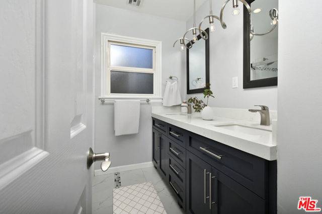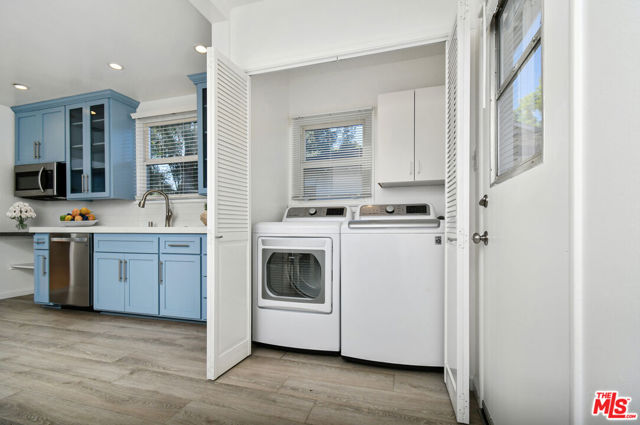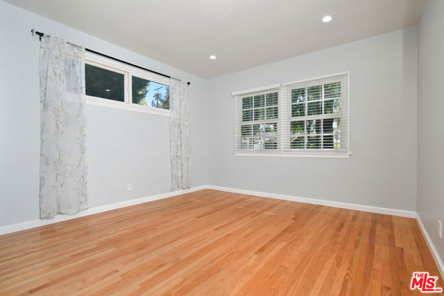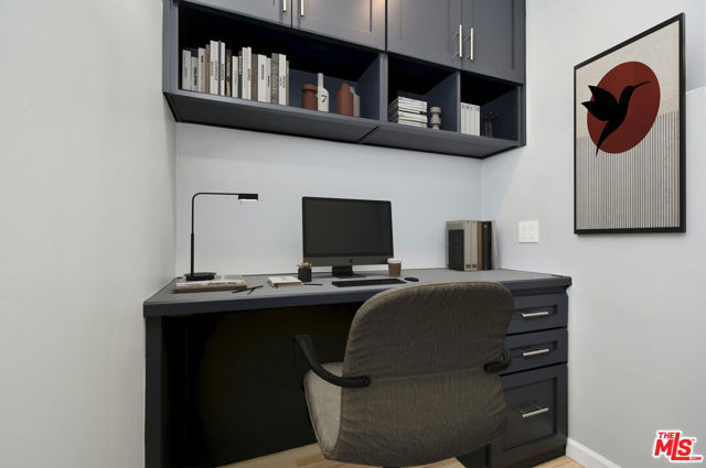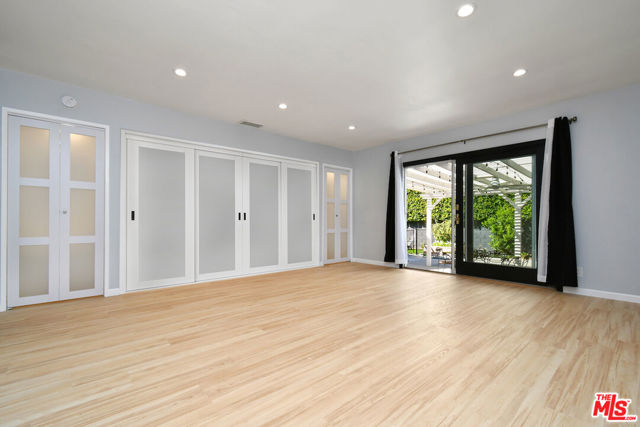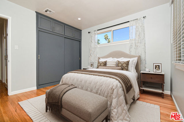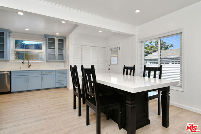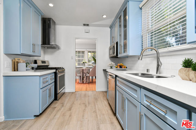 Tucked south of Ventura Boulevard on a quiet, tree-lined street, this beautifully renovated 3-bedroom, 2-bath home with an additional office perfectly blends charm and modern comfort. Bright and inviting, the open living space features refinished hardwood floors, a stone-faced fireplace, and large picture windows that fill the home with natural light. The remodeled kitchen stands out with custom sky-blue cabinetry, quartz countertops, and stainless-steel appliances, opening to a spacious dining area ideal for gatherings. Nearly every detail has been upgraded, including the roof, HVAC, bathrooms, interior and exterior paint, and landscaping. A flat, private lot offers a spacious yard and a finished detached garage that can serve as a playroom, studio, or flex space. Located in one of Woodland Hills' most desirable, walkable neighborhoods, near award-winning Woodland Hills Charter Elementary, this move-in-ready gem captures the best of Southern California living.