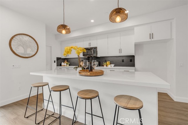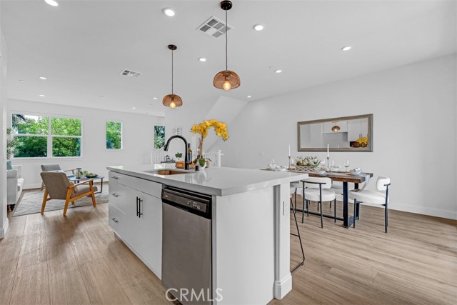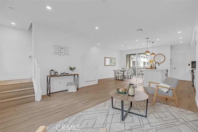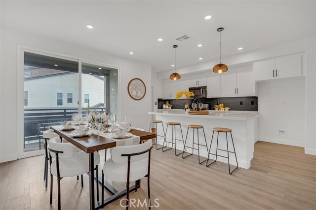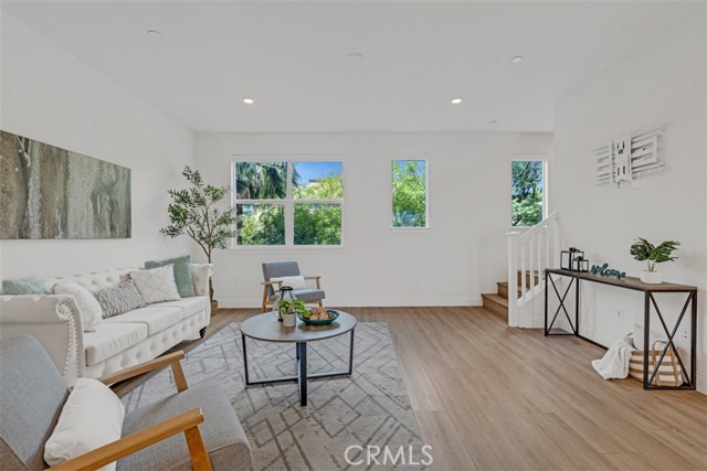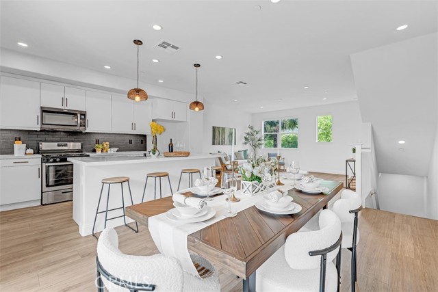 Built in 2020, this modern townhome offers a bright open floor plan with high ceilings, recessed lighting, and upgraded flooring throughout. The spacious living room connects to a stylish kitchen featuring quartz countertops, stainless steel appliances, and a center island. Dining area opens to a private balcony. Upstairs includes well-sized bedrooms and a primary suite with ample closet space and a contemporary bathroom. Additional features include in-unit laundry, attached garage, and energy-efficient systems. Conveniently located near shopping, dining, and major freeways.