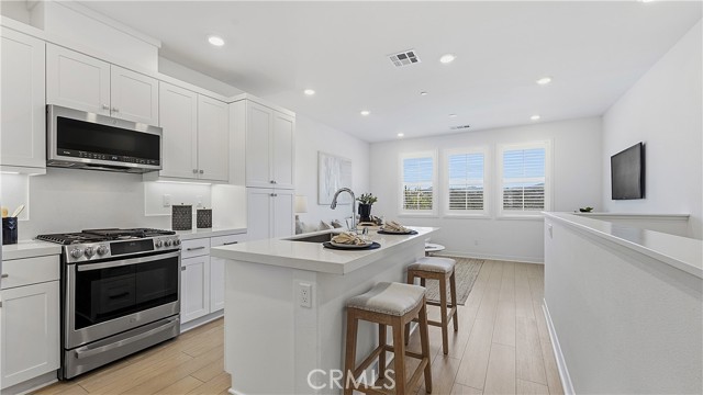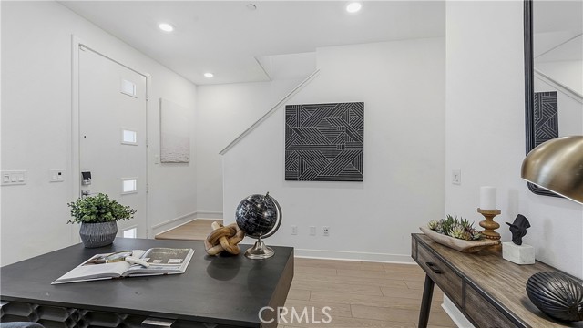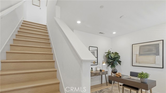 Experience modern luxury in this stunning 2023-built townhome in the prestigious Oasis community of Rienda. The thoughtfully designed floor plan features a main-level flex space adjacent to a convenient half-bathroom and the laundry area, creating the perfect setup for a high-end home office or creative studio. The interior radiates a model-home aesthetic with waterproof luxury vinyl tile flooring, designer plantation shutters, and a gourmet kitchen anchored by white shaker cabinetry, quartz countertops, and stainless steel appliances (refrigerator included). The washer and dryer are also included for ultimate move-in convenience. It also has solar ($102 per mo.). Relax on your private front patio with breathtaking views before heading out to enjoy the unparalleled Rancho Mission Viejo lifestyle. You are just steps away from the brand-new Boulder Pond for catch-and-release fishing and its modern playground, as well as the exclusive Oasis adult pool and adjacent state-of-the-art gym. With Ranch Camp’s beach-entry lagoon pool and outdoor BBQ areas nearby, this home offers a seamless blend of sophisticated design and active, resort-style living.