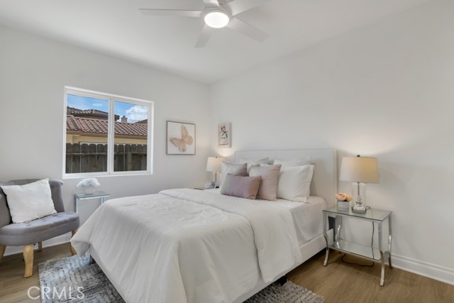 Turnkey 3-bedroom, 2.5- bathroom townhome in an elite Thousand Oaks neighborhood offering a well designed 1,334 square foot floorplan, fully paid off solar system, and the highest degree of privacy and tranquility. The owner recently invested approximately $60,000 to accentuate the open-concept interior with new vinyl plank flooring, fresh paint throughout, expensive light fixtures, fans, and mirrors, new closet doors and shower enclosures, and custom high end finishes top to bottom. The kitchen has white raised-panel cabinetry, a large pantry, granite countertops, a tile backsplash, stainless steel appliances, a French door refrigerator, and a convenient dining area. The sprawling primary suite includes ample closet space, a comfortable sitting area, and an updated en-suite bathroom. The entertainer's backyard offers a concrete patio, sweeping artificial turf lawn, and romantic sitting areas perfect for year-round California entertaining. The two-story stucco exterior with a Spanish tile roof, massive driveway, and direct-access two-car garage completes the package. Located in Thousand Oaks, CA minutes from The Oaks Mall, Thousand Oaks Blvd dining and shopping, hiking trails, and the 101 Freeway this move-in-ready Thousand Oaks townhome is an exceptional opportunity at this price point.