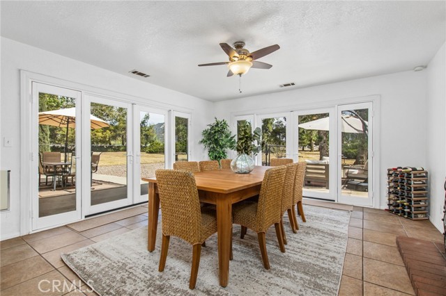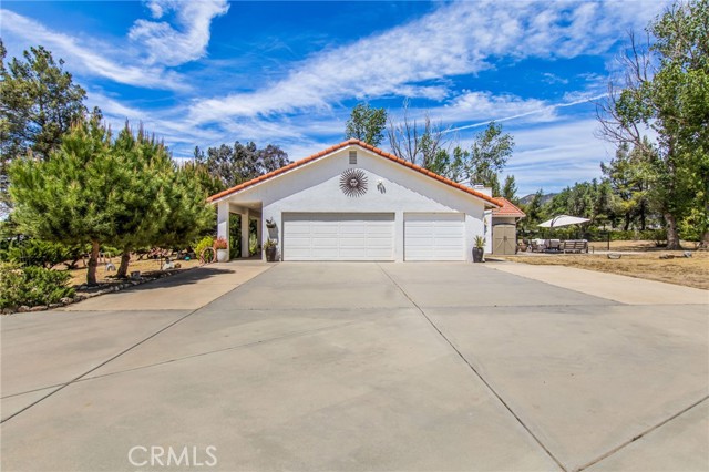 This is THE ONE!!!! Located in the beautiful Lake Riverside Estates only 25 min outside of Temecula. This gorgeous custom ranch home is turnkey and immaculately maintained with upgrades on a fully flat, fenced and usable 2.7 acres graced with mature trees throughout the entire property. Truly your own park retreat setting! Horse keeping area with covered stalls and turnout, tack/feed room and miles of direct access trails. No horses? That's okay this is a great outdoor storage area, gym area or whatever your delight. The home is a fabulous classic ranch style but has been upgraded with newer large picture windows and extra wide and tall glass doors/sliders for optimum light and views! HVAC just replaced in Nov 2024, all new breakers (except one) with refurbished electrical panel. Private well with great water quality, circular concrete drive, decorative wrought iron fencing, outdoor patio/dining area, separate black chain link fenced-in pet area (or play area), PRIVACY with surrounding large junipers keeping your private park, private!!!! The flow of the floorplan of the home is wonderfully open and bright allowing for views of all the outdoor trees and mountains. The spacious living area opens to an additional family/dining area with fireplace which opens to a wonderful kitchen with pantry and lots of storage cabinetry. Several lighting fixtures, door handles and fixtures have been updated. Bonus, an insulated MUSIC STUDEO!!!! The garage has a built in sound insulated music studio which could also be used as a home office or other bonus room (this could also be removed to restore the interior space of the garage if wanted). In the primary suite you will find an oversized walk in closet and sliding door access to private rear yard/patio with mountain views! The exterior of the home is in wonderful condition with stucco and concrete tile roof. Lots of room for RV/Boat/Trailer parking. This home is truly in wonderful condition, the property is clean and maintained, the setting is an absolute retreat and the location is splendid just a block up from paved entrance road to the community. Lake Riverside offers many amenities including a private lake for picnics, bird watching, catch and release fishing (non gas boats are welcomed), an equestrian arena, round pen and stalls, a 3600 ft lighted and paved airstrip for residents and guests, sports courts, community pool and more. Cal Fire is Close!