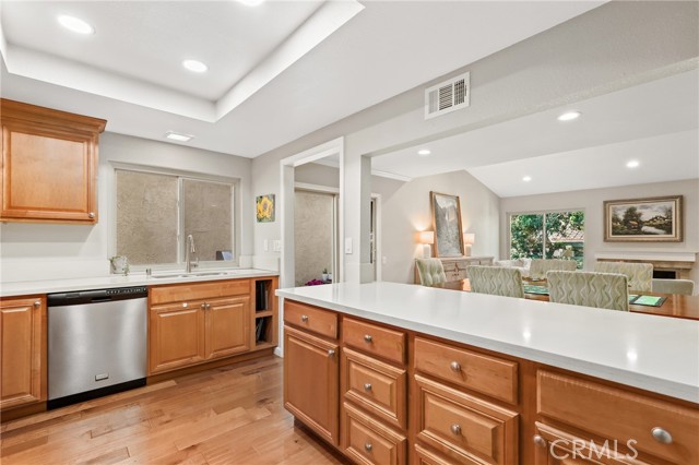 Meticulously maintained 2-bedroom, 2-bathroom home, which includes an additional den perfect for a home office or conversion into a 3rd bedroom. Located on a peaceful cul-de-sac in the desirable 55+ gated community of Casta del Sol, this property shows true pride of ownership. Featuring an open-concept layout with vaulted ceilings and updated windows. The spacious living room includes a gas fireplace and opens to private side and rear patios with recently updated covers. Additional highlights include a two-car garage with epoxy flooring, built-in cabinetry, and overhead storage racks. The home is also equipped with energy-efficient solar panels via an assumable lease. Residents of Casta del Sol enjoy resort-style amenities, including two pools, tennis, pickleball and paddle courts, a library, and community gardens. Furthermore, ownership includes membership to Lake Mission Viejo for boating, fishing, and live entertainment.