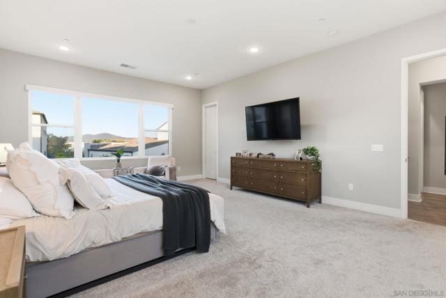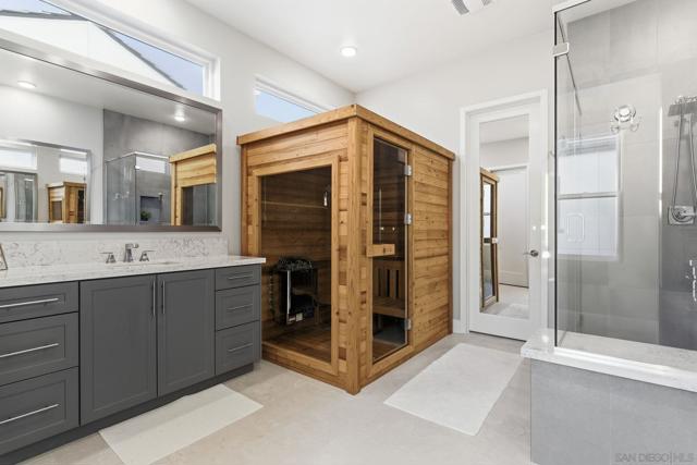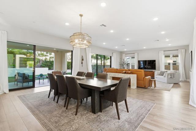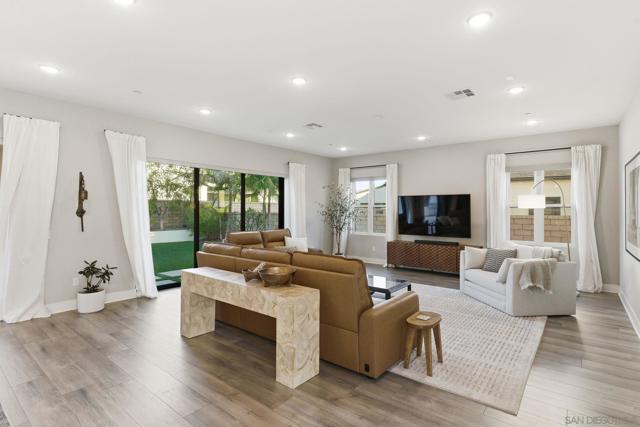 Welcome to 5328 Morning Sage Way, a meticulously crafted 2019-built luxury home in the heart of Pacific Highlands Ranch, one of San Diego's most sought-after master-planned communities. Offering 4,370 sq ft with 5 bedrooms and 5.5 baths, every inch reflects impeccable custom builder-grade finishes rarely found at this price point. Step inside to soaring ceilings, wide-plank flooring, and designer lighting that set an elevated tone from the moment you enter. The chef's kitchen is anchored by an oversized quartz island, a custom tile backsplash, premium stainless steel appliances, and a full wall of custom cabinetry, flowing effortlessly into the open-concept dining and great room. Custom La Cantina sliders span the back of the home, dissolving the boundary between indoor and outdoor living. Step outside to a covered patio with recessed lighting and a built-in BBQ, the ultimate setup for California entertaining year-round, all framed by a lush, low-maintenance artificial turf yard. The primary suite is a true retreat with spa-caliber bath finishes and a custom private sauna. Secondary bedrooms are generously sized with refined detail throughout. Perfectly positioned near top-rated schools including Canyon Crest Academy, Cathedral Catholic High School, and the prestigious Torrey Pines High School, and just minutes to the coast, shopping, dining, and major freeways. A 2-car garage and beautifully landscaped grounds complete this extraordinary offering. Luxury, lifestyle, and location, perfectly united!!