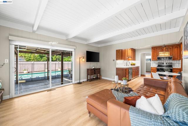 Sought-after Floresta Gardens charmer! 3 bdrm/1.5 bath featuring separate family/living rooms, allowing ample space for relaxation, entertaining and gatherings. Modernized and updated bathroom. The spacious kitchen is a highlight, offering an abundance of cabinet and countertop space, perfect for meal prep and elbow room. More amenities include two fireplaces, dual-pane windows for energy efficiency, and beautiful hardwood floors. No carpet! Step outside to your private backyard oasis, complete with an inviting in-ground pool, ideal for hot summer days. Additional features include central heating for year-round comfort and a two-car garage for added convenience and storage. This home is a perfect blend of comfort, style and great location! Nearby schools, shopping, restaurants… Great commute access! So much to love!