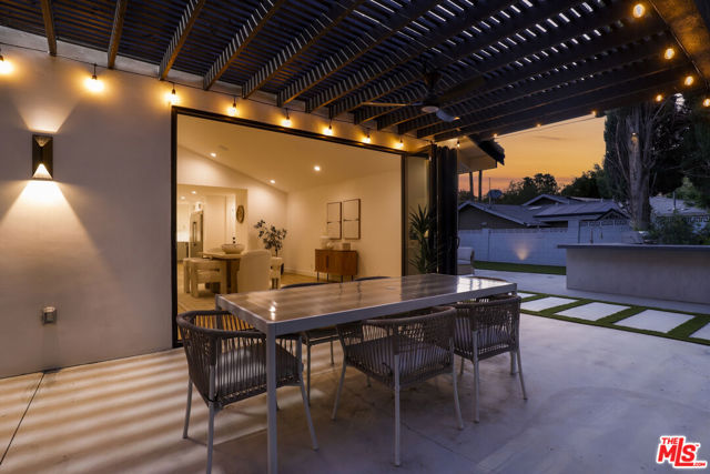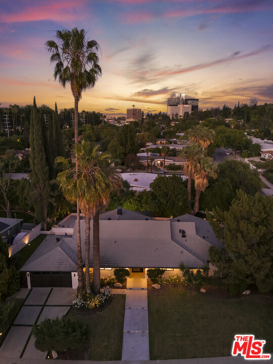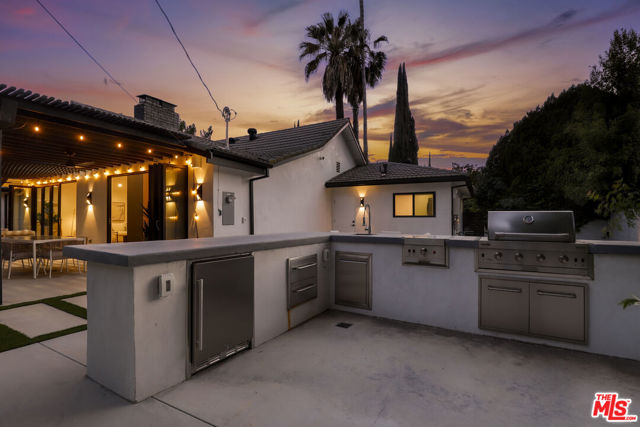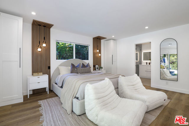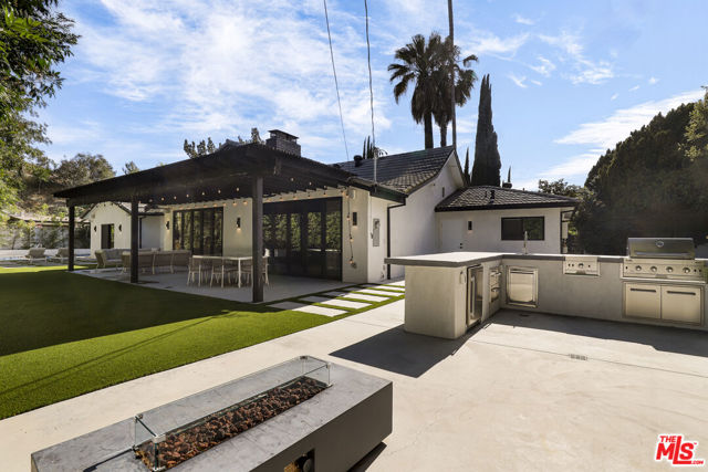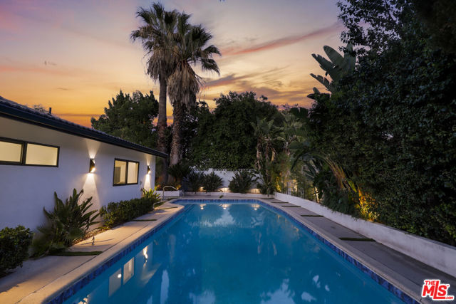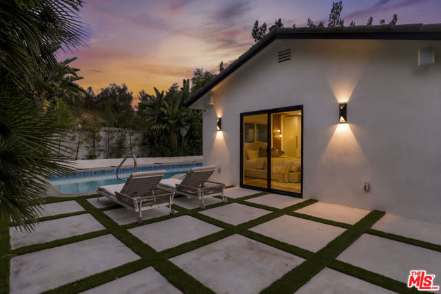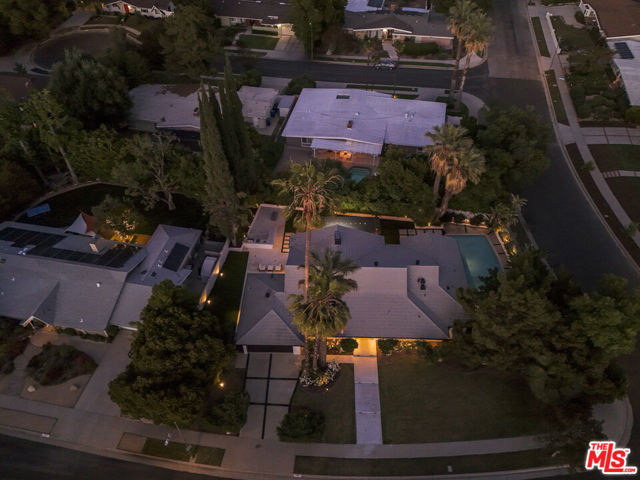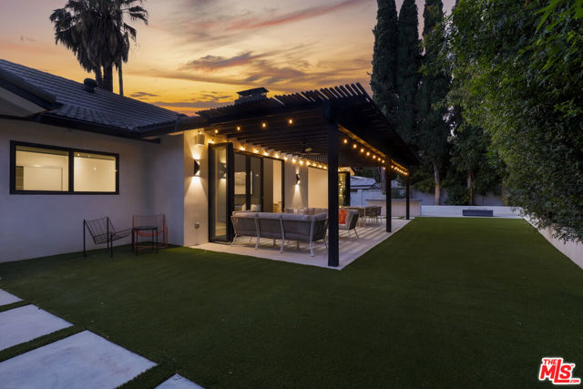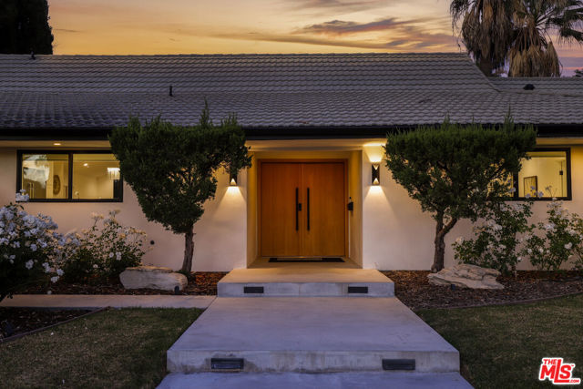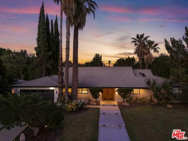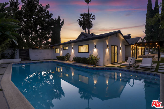 A masterclass in modern California luxury, this exquisitely reimagined single-story estate originally designed by renowned mid-century architect Charles DuBois is privately set on a tranquil cul-de-sac in the heart of Woodland Hills. From the moment you arrive, dramatic custom double doors reveal a residence defined by scale, light, and seamless indoor-outdoor living. Soaring ceilings and expansive sightlines frame an open-concept layout adorned with rich wood flooring and sophisticated Lutron lighting throughout. The grand living and dining spaces are anchored by a striking double-sided fireplace, while 12-foot folding glass doors dissolve the boundary between interior elegance and outdoor indulgence creating an effortless flow to a true resort-caliber backyard. At the heart of the home, a showpiece gourmet kitchen is designed for both elevated entertaining and everyday luxury, featuring premium Thor Kitchen appliances, a full side-by-side refrigerator and freezer, wine refrigeration, quartz surfaces, a statement pot filler, and a generous pantry. The primary suite is a private sanctuary complete with its own fireplace, direct access to the grounds, and a spa-inspired bath boasting dual vanities, an oversized multi-head shower, and a sleek LED-lit mirror. A secondary primary suite offers its own bespoke en-suite bath, ideal for guests or multigenerational living. Cutting-edge smart home integration enhances every aspect of daily living, including whole-home lighting, climate control, and a dual-zone indoor/outdoor Sonos sound system. A comprehensive Ring security system provides peace of mind. Outdoors, the estate transforms into a private oasis featuring a sparkling pool, expansive lawn, built-in fire feature, and a fully equipped outdoor kitchen with BBQ, cooktop, sink, and refrigeration perfectly curated for al fresco dining and entertaining under the California sky. No detail has been overlooked, with extensive upgrades including new windows, doors, plumbing, electrical systems, and a tankless water heater. Located just moments from the vibrant energy of Warner Center, premier shopping, and dining, this is a rare offering that embodies both timeless design and contemporary luxury.