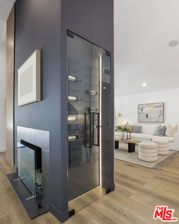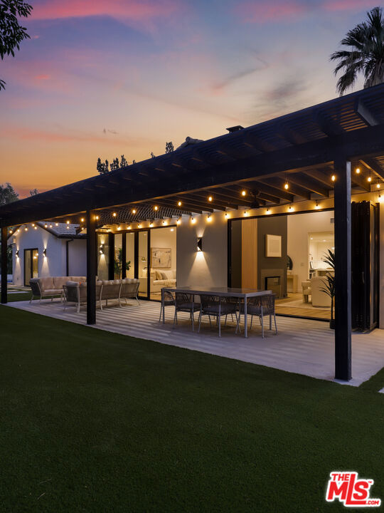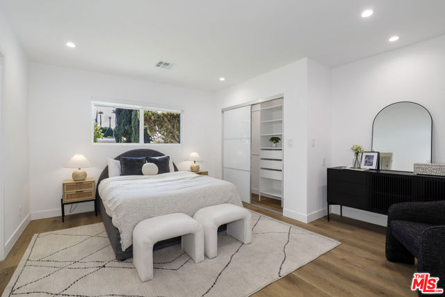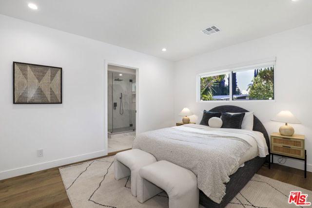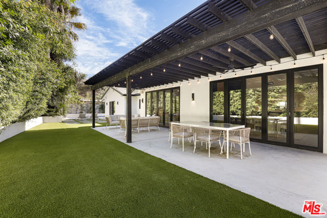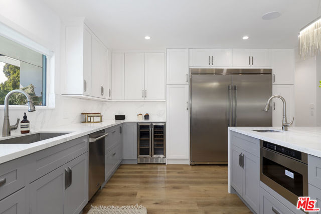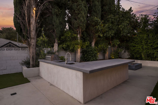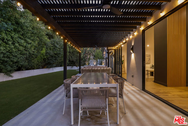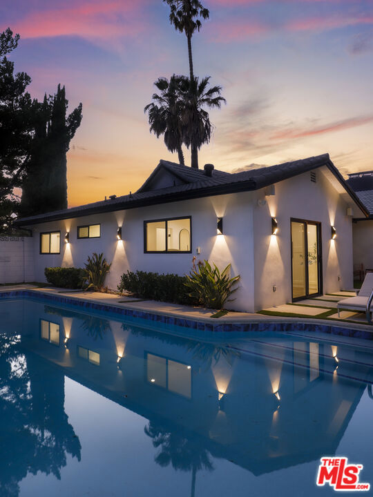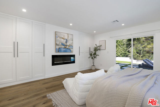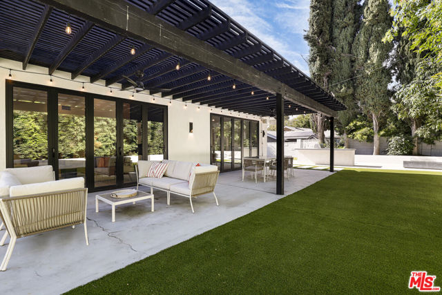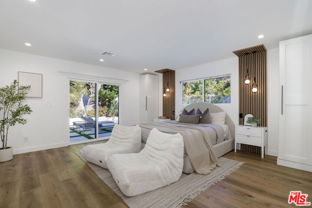 A masterclass in modern California luxury, this exquisitely reimagined single-story estate originally designed by renowned mid-century architect Charles DuBois is privately set on a tranquil cul-de-sac in the heart of Woodland Hills. From the moment you arrive, dramatic custom double doors reveal a residence defined by scale, light, and seamless indoor-outdoor living. Soaring ceilings and expansive sightlines frame an open-concept layout adorned with rich wood flooring and sophisticated Lutron lighting throughout. The grand living and dining spaces are anchored by a striking double-sided fireplace, while 12-foot folding glass doors dissolve the boundary between interior elegance and outdoor indulgence creating an effortless flow to a true resort-caliber backyard. At the heart of the home, a showpiece gourmet kitchen is designed for both elevated entertaining and everyday luxury, featuring premium Thor Kitchen appliances, a full side-by-side refrigerator and freezer, wine refrigeration, quartz surfaces, a statement pot filler, and a generous pantry. The primary suite is a private sanctuary complete with its own fireplace, direct access to the grounds, and a spa-inspired bath boasting dual vanities, an oversized multi-head shower, and a sleek LED-lit mirror. A secondary primary suite offers its own bespoke en-suite bath, ideal for guests or multigenerational living. Cutting-edge smart home integration enhances every aspect of daily living, including whole-home lighting, climate control, and a dual-zone indoor/outdoor Sonos sound system. A comprehensive Ring security system provides peace of mind. Outdoors, the estate transforms into a private oasis featuring a sparkling pool, expansive lawn, built-in fire feature, and a fully equipped outdoor kitchen with BBQ, cooktop, sink, and refrigeration perfectly curated for al fresco dining and entertaining under the California sky. No detail has been overlooked, with extensive upgrades including new windows, doors, plumbing, electrical systems, and a tankless water heater. Located just moments from the vibrant energy of Warner Center, premier shopping, and dining, this is a rare offering that embodies both timeless design and contemporary luxury.