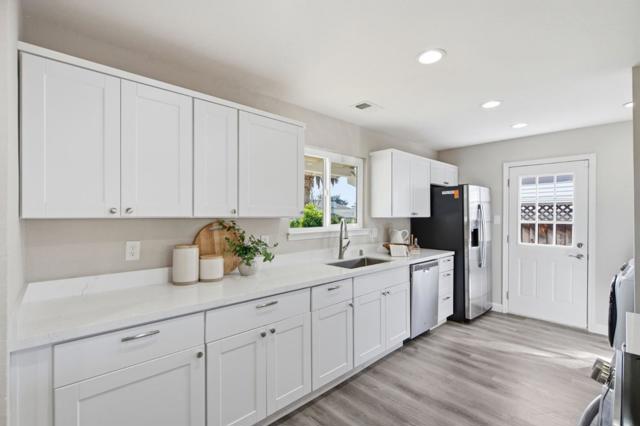 Meticulously maintained home on a quiet Milpitas st. This 3-bed 2-bath home offers 1,102 sf with a comfortable layout and a spacious backyard. Recent improvements include a remodeled kitchen and bathrooms, flooring, LED recessed lighting, windows and doors, SS appliances, a 200-amp electrical panel, and a HVAC system with added attic insulation for energy efficiency. Interior improvements were completed including foundation earthquake retrofit with permits. The garage features new sheetrock walls and epoxy flooring offers flexibility for a variety of uses. Outdoor enhancements include a newer driveway, paver surroundings, a French drain system and enjoy hill views. Located near multiple parks and Bay View Golf Club, with hiking nearby at Ed R. Levin County Park. Short walk to public Elementary and Merryhill Private Elementary and Middle School, and just minutes from Rancho Milpitas Middle School and Milpitas High School. Close to Ocean Supermarket, Safeway, The Great Mall, Milpitas Sports Center, the library, and many popular restaurants. Quick access to major commute routes including Hwy 680, 880, and 237, nearby high-tech companies, and a Google shuttle stop right on E Calaveras Blvd. A wonderful Move-In ready home in one of Milpitas most convenient locations!