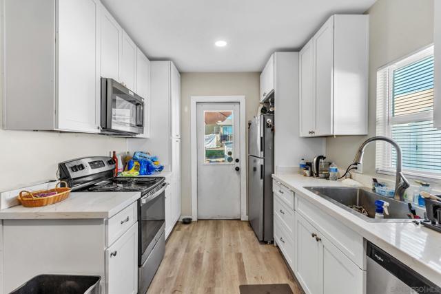 Fully reimagined and rebuilt from the ground up, this exceptional property offers the perfect blend of modern living, income potential, and future development upside. The main residence features 2 bedrooms and 1 beautifully upgraded bathroom, thoughtfully designed with quality finishes and a fresh, contemporary feel throughout. Attached to the main home is a private junior ADU with its own separate entrance, complete with a kitchenette and full bathroom - ideal for rental income, multigenerational living, or a private guest suite. Every detail has been upgraded, including a brand-new roof, updated mechanical systems, and modern electrical - providing peace of mind and turnkey convenience for the next owner. Situated on a lot zoned for two units, this property offers compelling development potential for those looking to expand or maximize value. The oversized frontage provides abundant parking being able to accommodate up to 9 vehicles (plus there's additional street parking). The property also features dedicated RV parking with hookups, creating an additional opportunity for income or flexible use. Alley access at the rear creates even more flexibility, especially for future development with separate entrances and dedicated parking. Whether you're an investor seeking strong returns or an owner-occupant looking to offset your mortgage, this is a rare opportunity to own a versatile, high-upside property in San Diego.