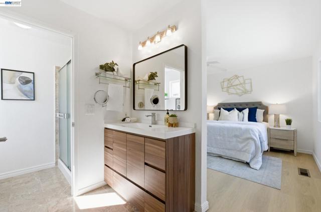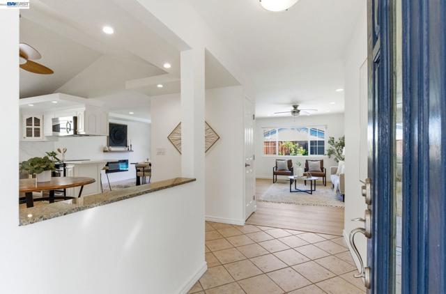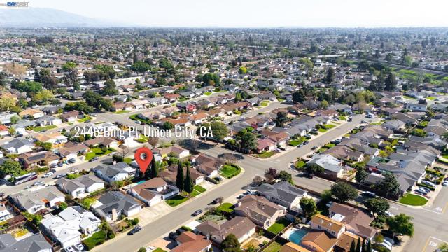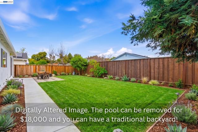 Welcome to this beautifully updated single-story home in the sought-after CREEKSIDE neighborhood of Union City! Featuring 3 beds, 2 baths & ~1,392 sq ft, this move-in ready home blends comfort, efficiency & lifestyle-focused upgrades * Enjoy a bright, open layout filled with natural light, fresh paint, updated flooring & a modern kitchen with vaulted ceilings, sleek quartz counters, RO filter, custom cabinetry with pull-outs & a garden window. Thoughtfully designed for everyday living, the home includes Elfa closet systems in every bedroom, Gladiator custom cabinet system in garage, offering exceptional organization rarely found in comparable homes * Step outside to a private courtyard & spacious backyard featuring a HEATED swimming pool & spa...perfect for relaxing, entertaining, or enjoying year-round California living. Prefer a landscaped yard without a pool? A full pool removal only costs ~18K * The yard also includes mature fruit trees, including lemon, tangerine, cherry, peach, & pomegranate creating your own backyard orchard * Additional highlights include a cozy dining area with an electric fireplace, OWNED solar, central heat & A/C, dual-pane windows, GE Professional washer/dryer & a Bosch dishwasher. Ideally located in a quiet cul-de-sac setting just 0.9 mi to BART, ~9.6 mi to Meta, and close to Alameda Creek Trail, parks, the Dumbarton Bridge & I-880.
