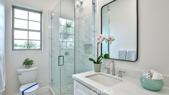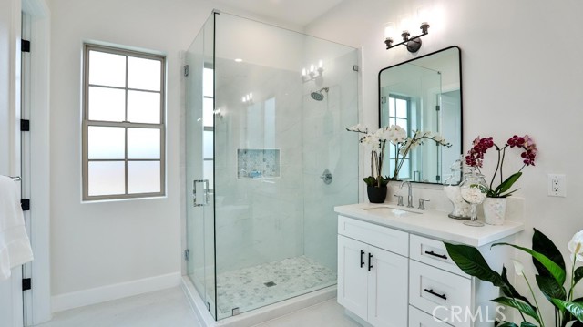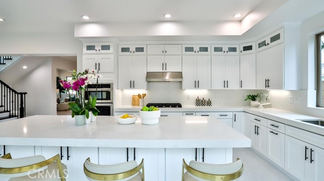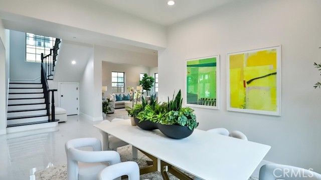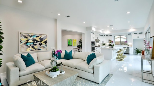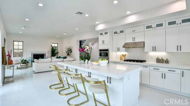 Beautiful brand-new model home in the heart of Fountain Valley, a masterclass in architectural elegance and one of only seven exclusive residences nestled in a private Villa Siena enclave. Built in 2024, this 3,408 square-foot with 4 beds, 4 baths, 2 car garages model home strikes a perfect balance between high-end craftsmanship and modern sustainability, situated just minutes from award-winning schools and the Southern California coast. The journey begins with a striking 21-foot-high staircase and palladium window, leading into an airy interior defined by 10-foot ceilings, marble flooring, and designer fixtures. The floor plan is thoughtfully curated for versatility, featuring an elegant formal living and dining area, a spacious upstairs loft, and four bedrooms—including a convenient main-floor suite and three upstairs ensuites. At the heart of the home lies a chef’s dream kitchen, where premium Samsung stainless steel appliances and an "Xtreme-Air" vent hood complement white shaker cabinetry and a massive quartz center island. This culinary space flows effortlessly into a light-filled family room anchored by a contemporary stacked-stone gas fireplace. Retreating to the primary suite reveals a spa-inspired sanctuary, complete with two giant walk-in closets, a free-standing soaking tub, and an oversized walk-in shower. Beyond the interior luxury, the home is engineered for the future with a fully integrated solar system and tankless water heater. Positioned at the end of a quiet cul-de-sac with an extra-long driveway can accommodate up to 9 parking spaces and a private backyard with a covered patio, this residence offers a rare opportunity for the most discriminating buyer to experience the pinnacle of coastal-adjacent living.