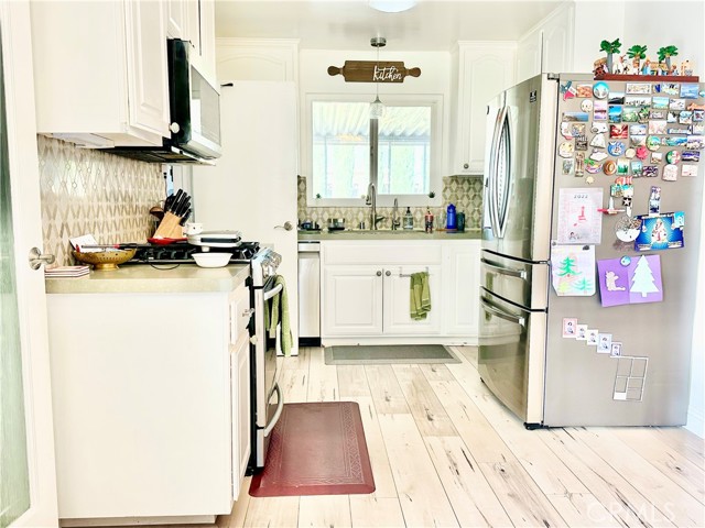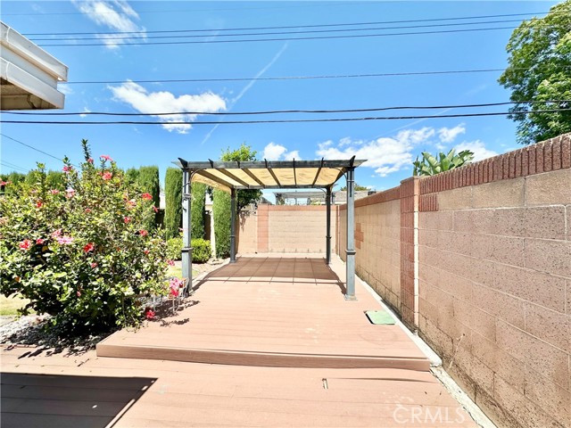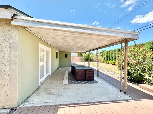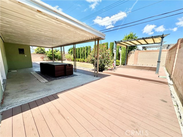 Charming single-story home located in a quiet, well-established neighborhood in Cypress. This beautifully maintained 3-bedroom, 1.5-bath residence offers approximately 1,050 square feet of comfortable living space on a spacious lot. The home features a bright and inviting living room with abundant natural light and French doors that open to the backyard, creating a seamless indoor-outdoor flow. The updated kitchen boasts quartz countertops, custom backsplash, modern appliances, and ample cabinetry, along with a convenient walk-in pantry and drinking water filtration system for added convenience. Interior highlights include a blend of tile and new laminated flooring, central heating and air conditioning, and a whole-house water softener system. The functional layout is ideal for everyday living, and the attached two-car garage provides direct access. The expansive backyard is perfect for relaxing or entertaining, complete with a pergola/gazebo area, raised deck, garden beds with drip irrigation, and RV parking access. The homes comes with water softener and filtered water for drinking. The property offers excellent curb appeal with well-maintained landscaping and a private, fenced yard. Ideally situated near parks, shopping, dining, and within the highly regarded Cypress School District, this home provides both comfort and convenience in a desirable location.