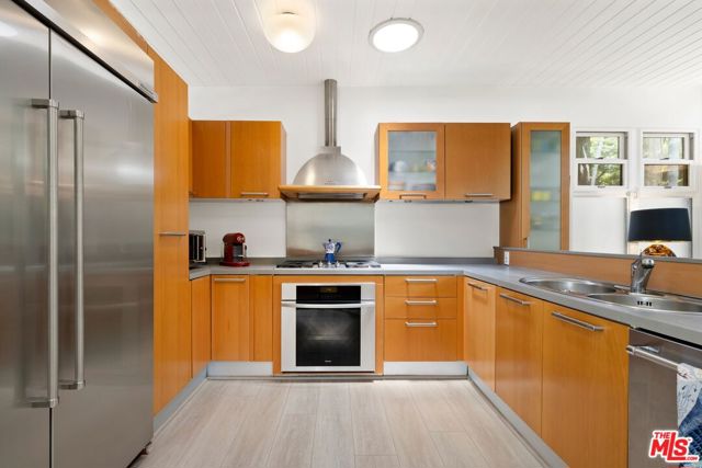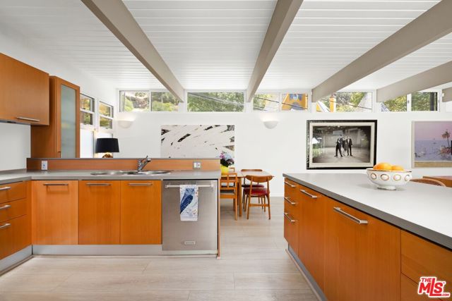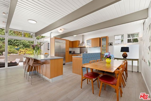Beautifully updated post and beam modern home nestled in one of Los Angeles' most sought-after neighborhoods. Originally built in the 1950s, this five-bedroom, three-bathroom residence showcases timeless mid-century architecture enhanced by thoughtful modern updates throughout. The main level features open-concept living spaces bathed in natural light, with exposed wood beams and floor-to-ceiling windows that create a seamless indoor-outdoor connection. The gourmet kitchen flows effortlessly into the dining and living areas, making it ideal for both everyday living and entertaining. The entire second level is dedicated to the primary suite that includes a large bedroom, spa-inspired en-suite bathroom, and an adjoining room perfect for a home office, nursery, or bedroom. This home is offered fully furnished with beautifully curated, high-end furnishings and tasteful artwork throughout. Outside, the lushly landscaped backyard offers a peaceful escape with multiple areas for outdoor dining, lounging, and entertaining. Whether hosting guests or enjoying a quiet evening under the stars, the setting is private, inviting, and serene. Additional highlights include a two-car carport, excellent street parking, and close proximity to some of Los Angeles' best hiking trails. Located within the coveted Wonderland Avenue School district and just minutes from premier dining, shopping, and entertainment, this exceptional home is ideal for both families and entertainers and offers the perfect balance of tranquil, stylish living and vibrant city access. Owner is open possibility of a corporate lease. Available June 1.