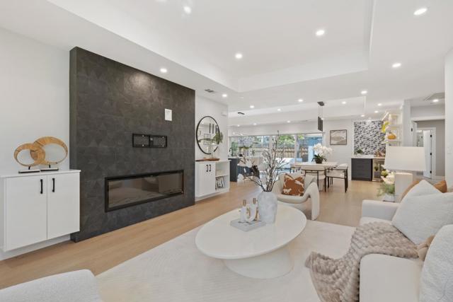 rebuilt from the foundation in 2024, this sleek contemporary home offers modern design and exceptional versatility with a fully independent detached ADU completed in 2022. Clean lines, a glass-panel garage door, and a striking blue entry set the tone for stylish interiors throughout. The main home features 3 bedrooms and 2 baths centered around an open-concept great room with a geometric tile fireplace, floating cabinetry, and seamless indoor-outdoor flow via sliding glass doors. The designer kitchen showcases navy and white cabinetry, marble-style quartz counters, stainless steel appliances, and a spacious island with seating. A formal dining area with open shelving and wine bar enhances functionality. The primary suite offers a custom walk-in closet and spa-like bath with freestanding tub, frameless shower, and dual vanities. Two additional bedrooms share a hall bath. An attached 1-car garage includes laundry. The detached 1-bedroom, 1-bath ADU (1948 Hackett Ave) features a full kitchen, living area, laundry, and mini-split HVAC ideal for guests or rental income. Low-maintenance synthetic lawns and landscape lighting complete the property. Ideally located one block from Rengstorff Park, near Castro Street and San Antonio Center, with access to top Mountain View schools.