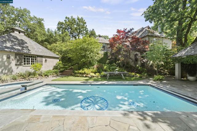 Designed in 1933 by Miller & Warnecke, this slate-roofed Tudor is one of Orinda Country Club's most enchanting estates nestled among heirloom oaks, Japanese maples, and nearly year-round blooms.