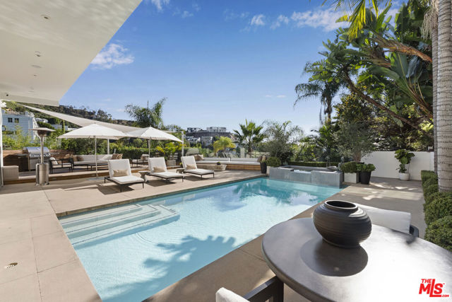 Above Sunset Plaza, this California contemporary welcomes you with a gated approach, a calming water feature, and impressive double doors.